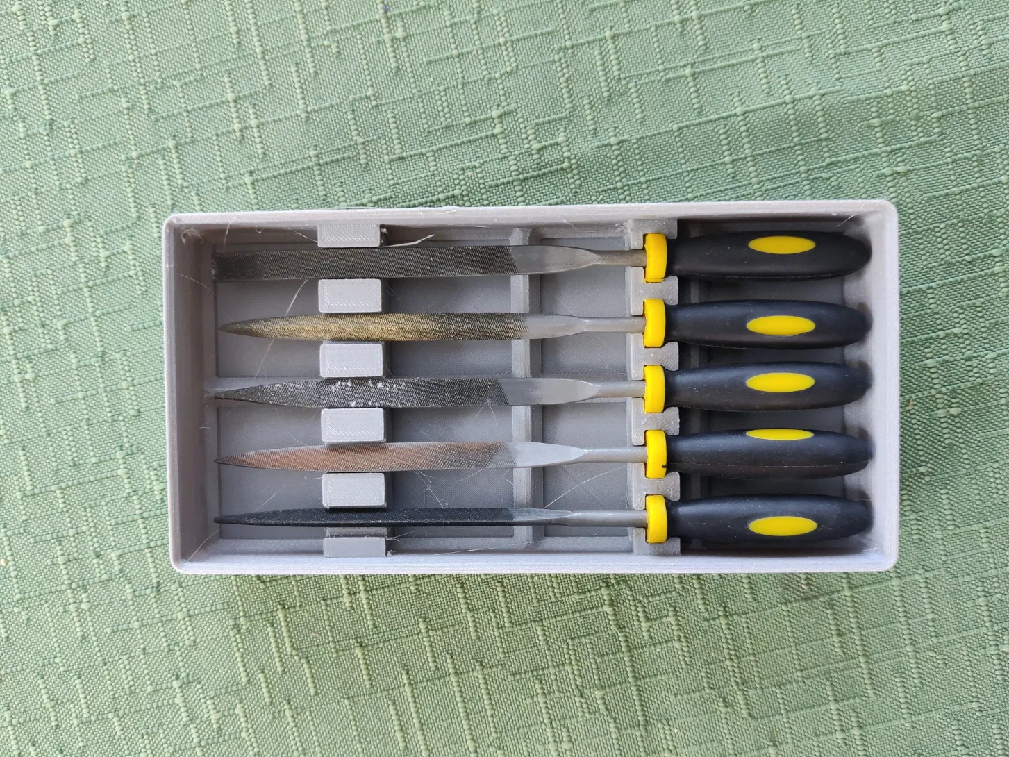 Một khay Gridfinity có thể xếp chồng lên nhau dành cho 5 Tệp Kim. Sản phẩm này có thiết kế tối ưu cho việc lưu trữ và dễ dàng truy cập vào các tệp kim của bạn, phù hợp với hệ thống Gridfinity.