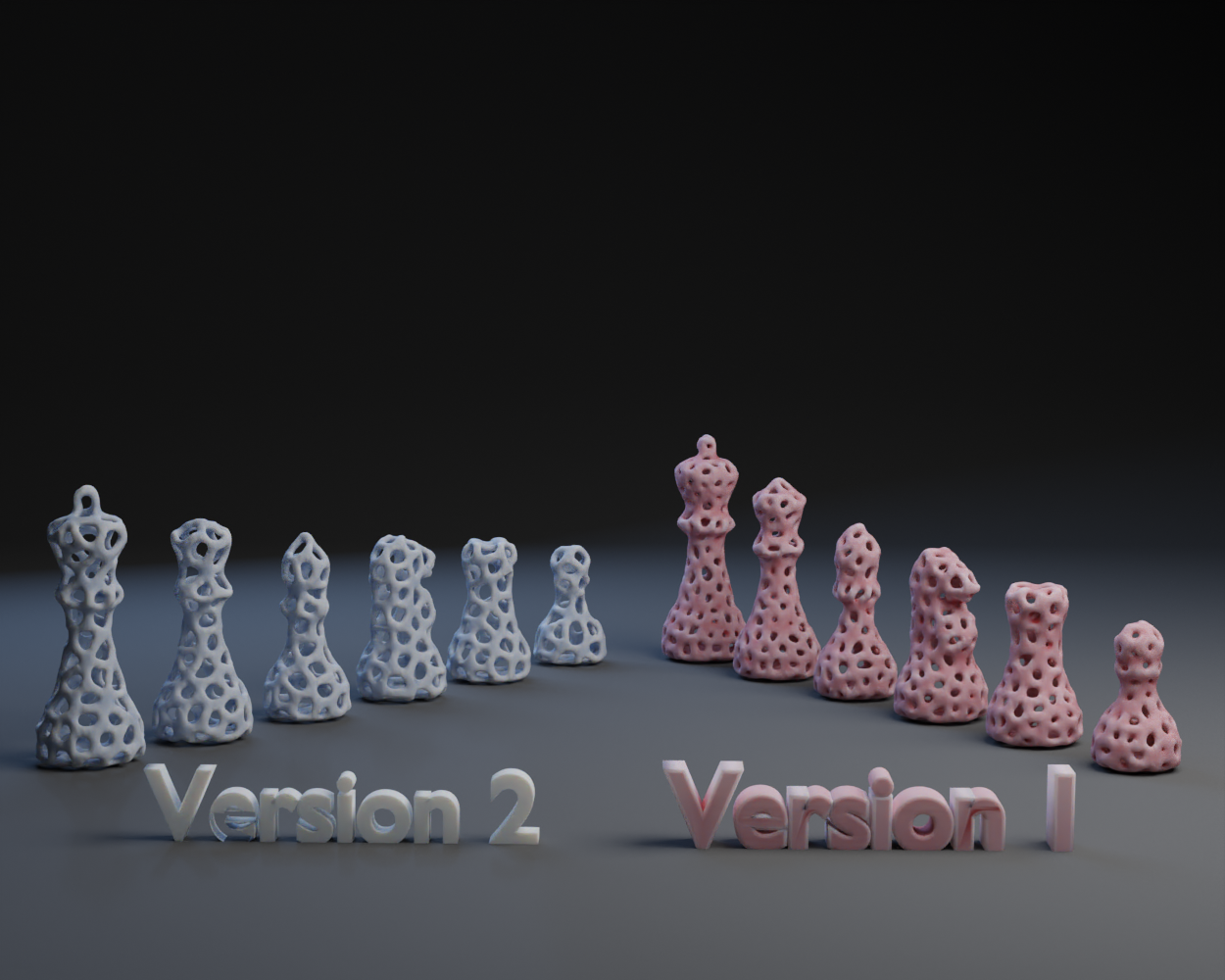 Khám phá bộ cờ vua Voronoi với hai phiên bản độc đáo. Phiên bản của Roman Hegglin cho phép gắn ốc lục giác để tăng trọng lượng quân cờ. Tải ngay file STL miễn phí để in 3D!