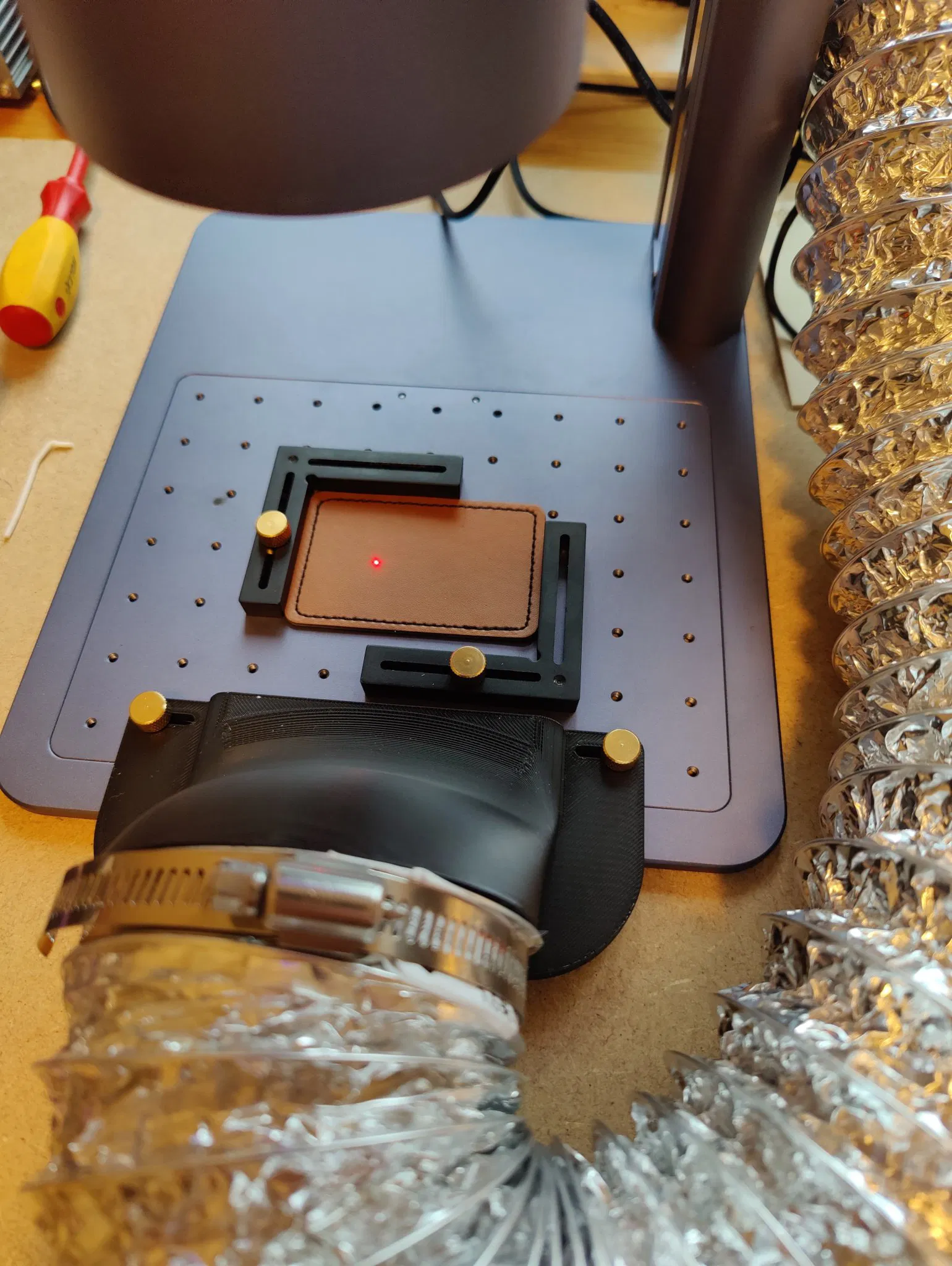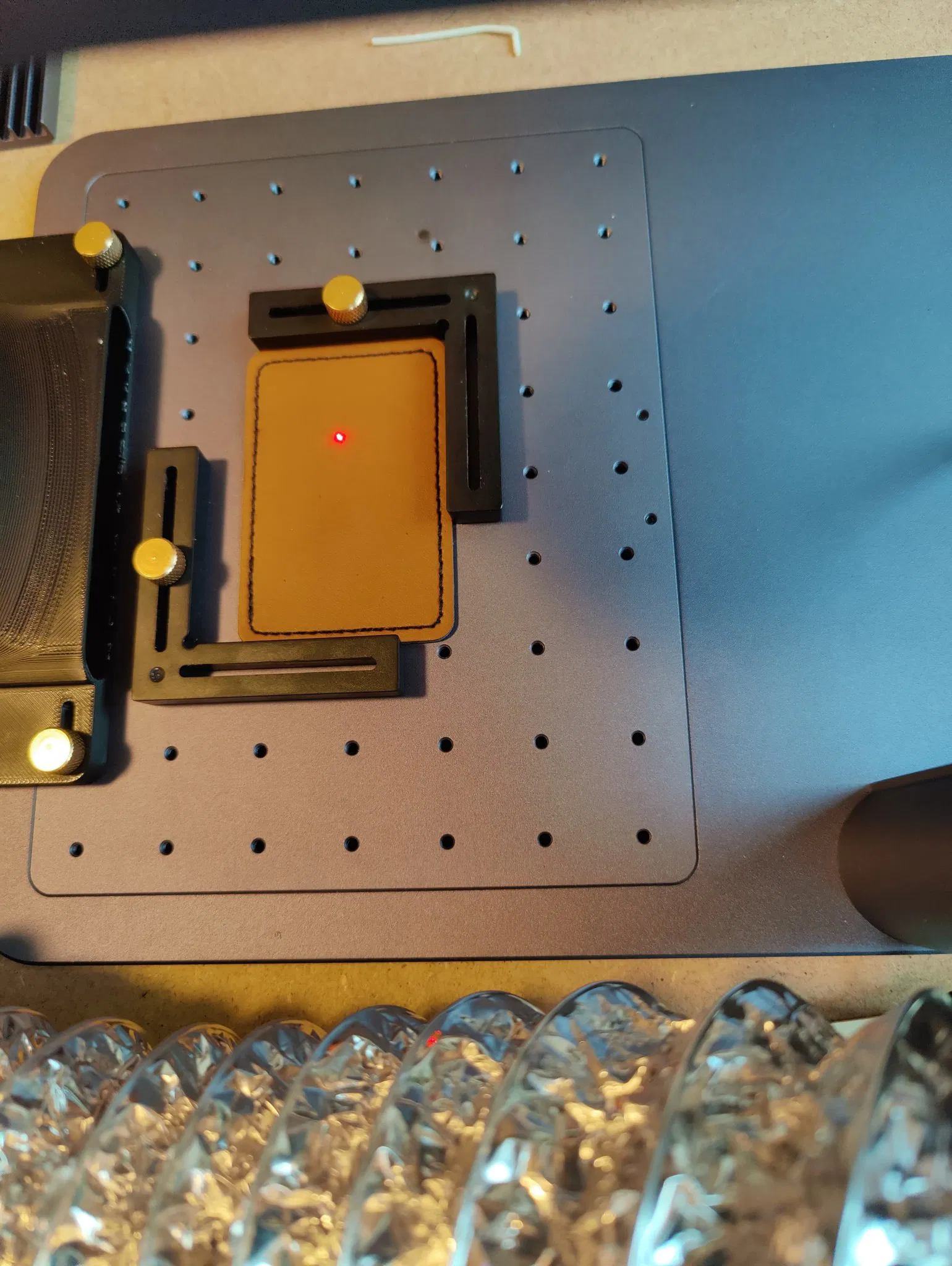 Laserpecker 4 Giá treo bằng phẳng với các lỗ vít để gắn trên tấm.