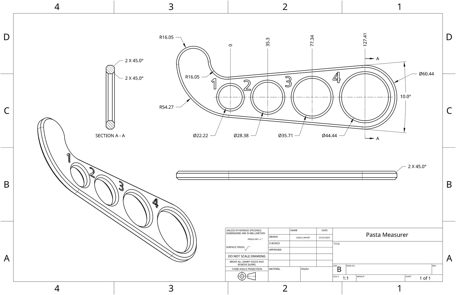 Dụng cụ này đo lượng pasta hoàn hảo, đặc biệt là với Linguine và Spaghetti. Ngoài ra, bạn cũng có thể dùng nó cho Bucatini, Fettucine, Pappardelle và các loại pasta sợi dài khác. Cách dùng rất đơn giản, chỉ cần luồn pasta qua lỗ và xem con số tương ứng với số người ăn.