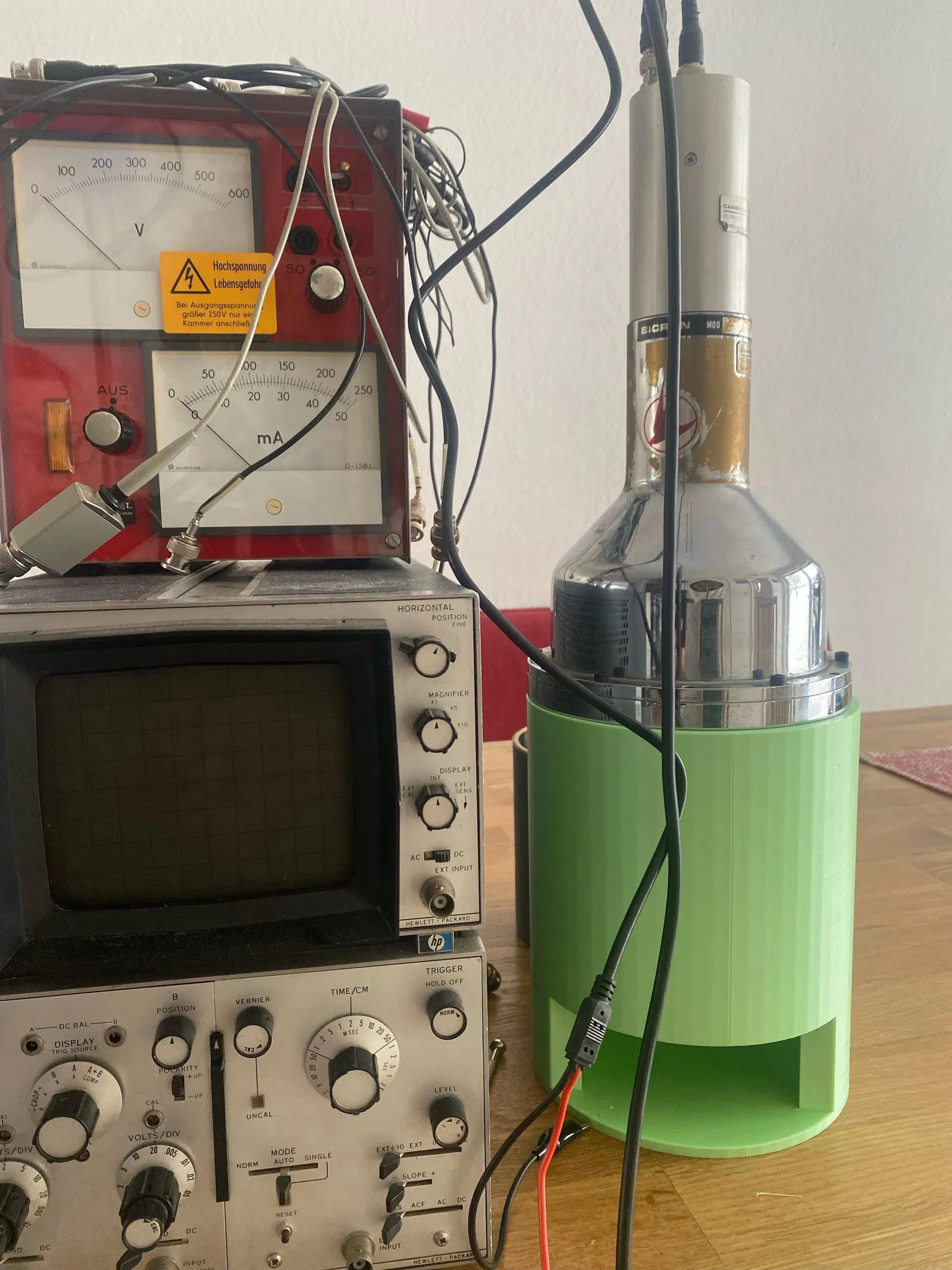 Chân đế đơn giản cho máy Canberra / Bicron 5H5 của tui. Được thiết kế với buồng mẫu cao 5 cm