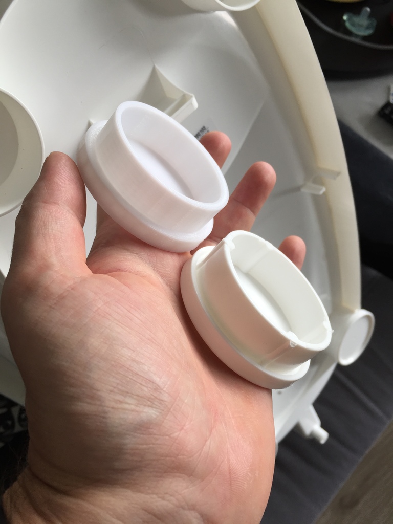 Chân cho bồn tắm em bé BÉBÉ-JOU. Mình bỏ phần tròn giữ nó trên cái cũ ra và dán bằng keo nến cho chắc ăn. Dùng máy in Creality Ender 3, hỗ trợ in, độ phân giải .3, ruột 15. Thiết kế bằng Tinkercad.