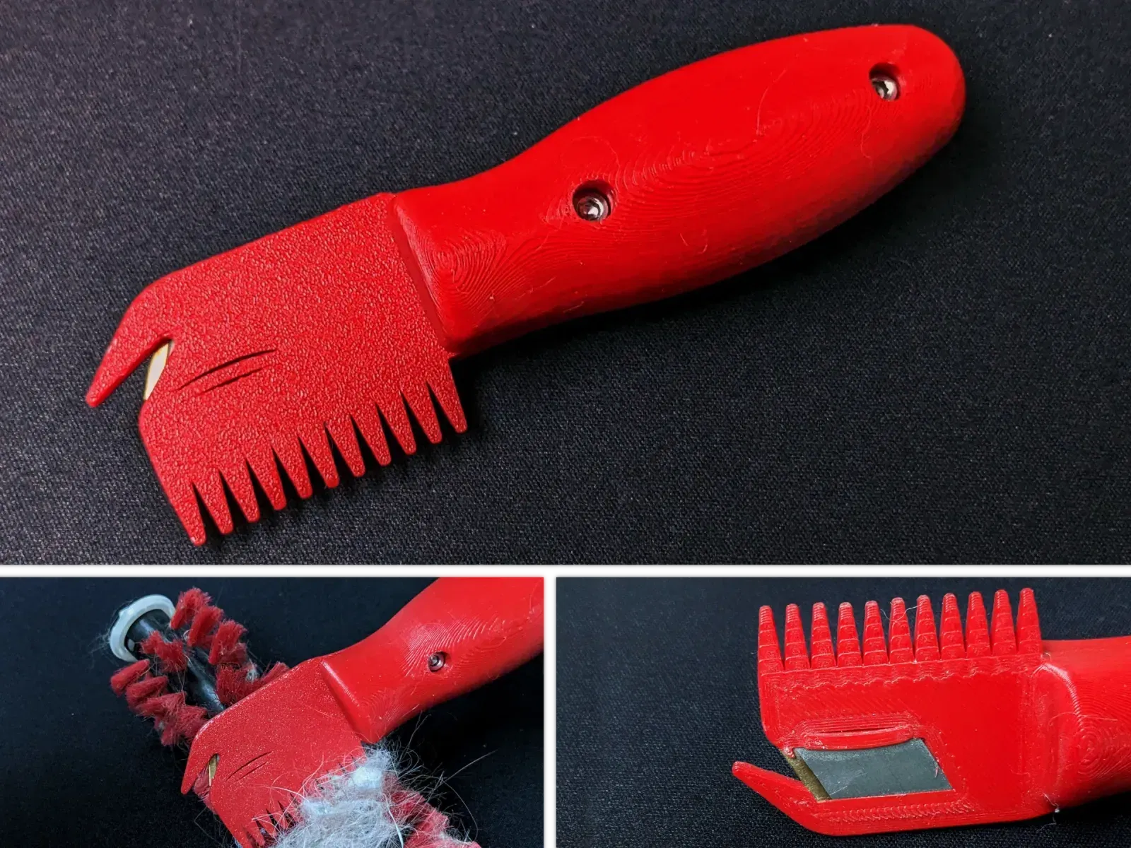 Chổi cọ rửa cho robot hút bụi có tích hợp lưỡi cắt. Lưỡi cắt này có thể dễ dàng bẻ ra, nhưng nên dùng kìm và đeo kính bảo hộ. Nếu lưỡi dao không khớp, có thể dùng mỏ hàn để nung chảy và cố định. Cần 2 con bu lông M3x15 và ốc M3 để nối hai phần chổi.