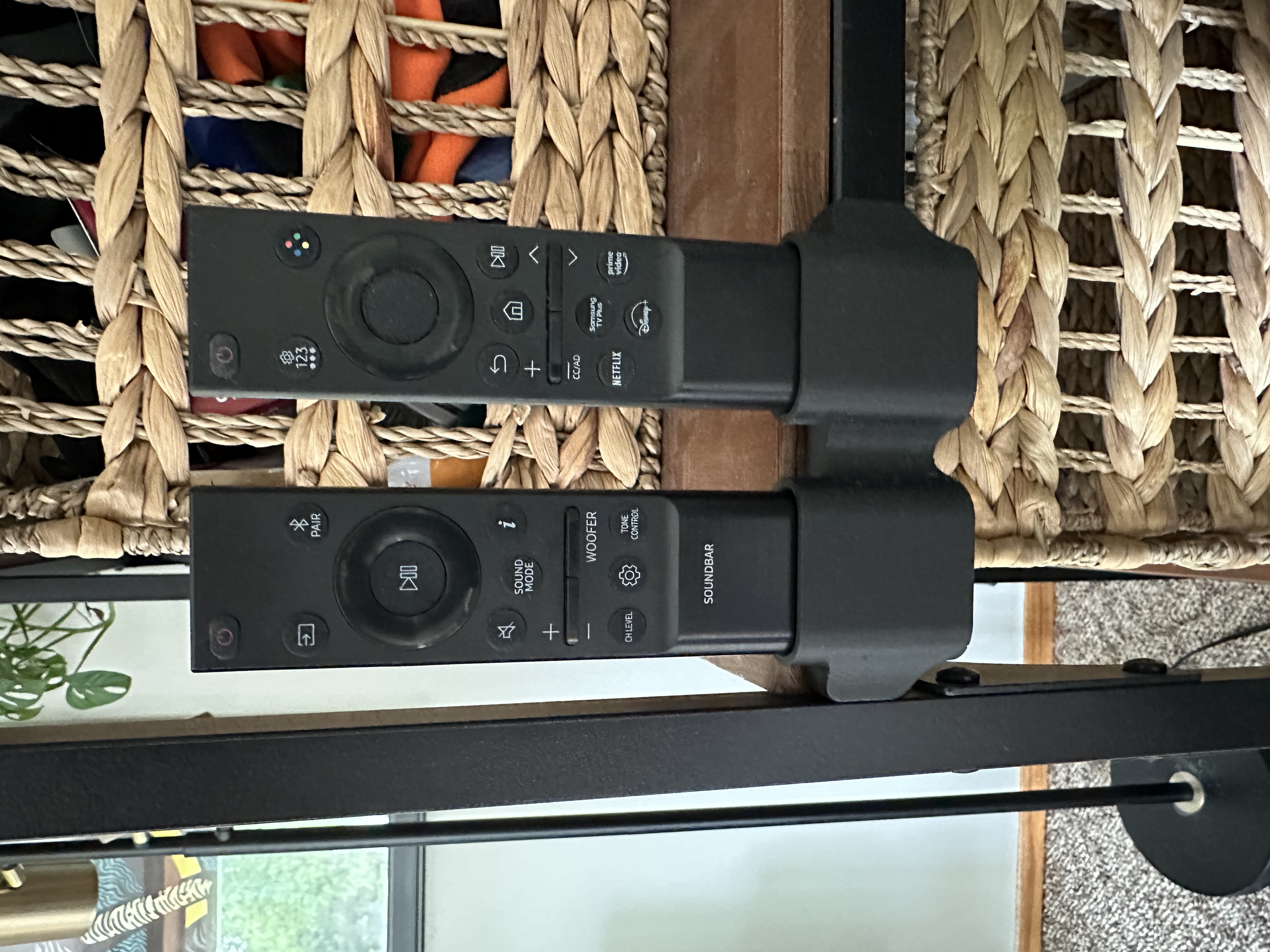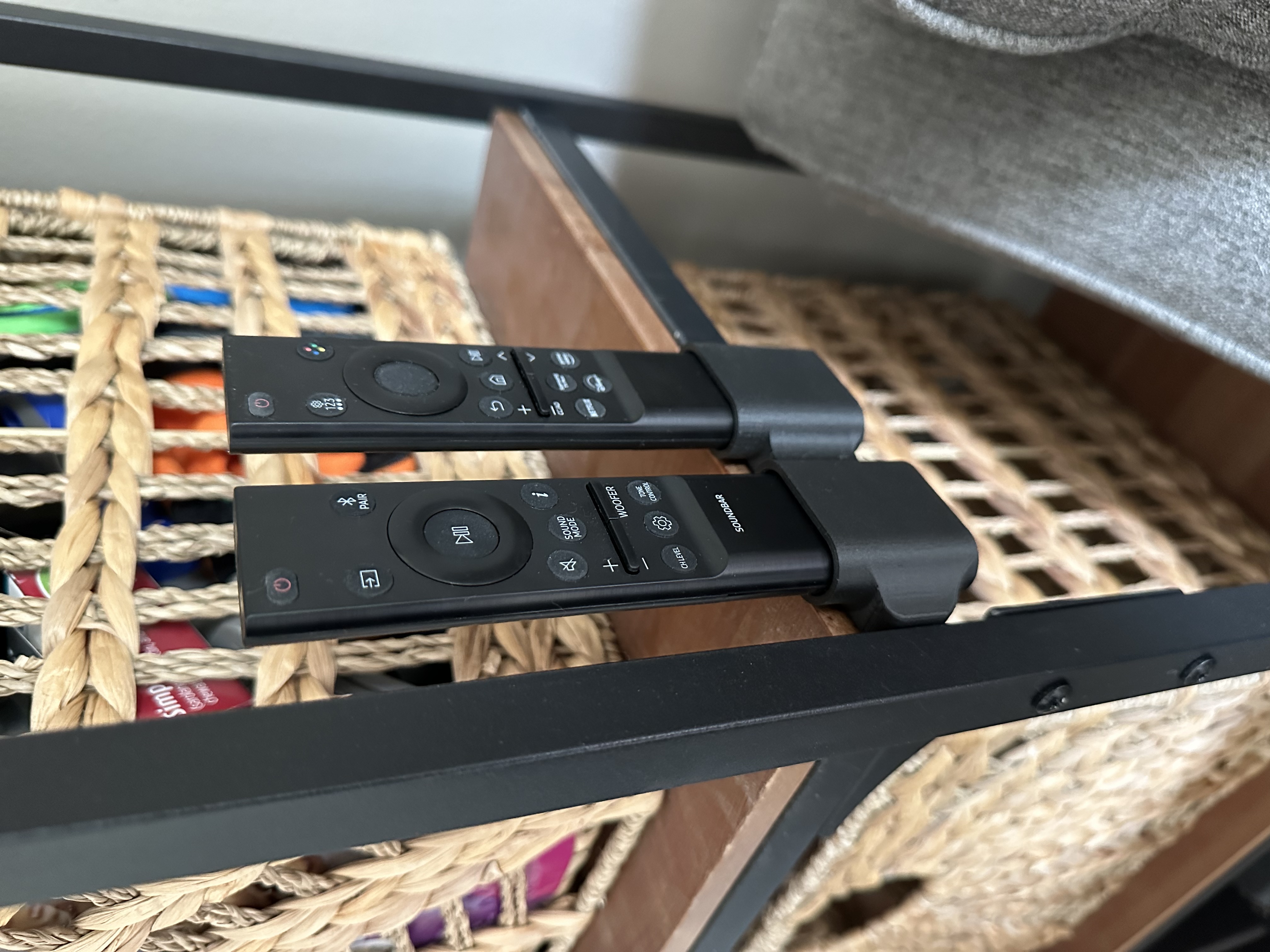 Tao muốn có một cái chỗ để remote Samsung lên bất kỳ cái kệ nào trong phòng khách cho nó tiện. Thiết kế này dùng nam châm trụ loại 10x4mm đặt dưới lớp vỏ bằng nhựa TPU hoặc filament dẻo khác. Dùng keo để cố định cái vỏ lên trên nam châm. Nên xài nam châm loại dính mạnh nha, chứ remote vẫn hơi xê dịch chút khi mình thả vô á.