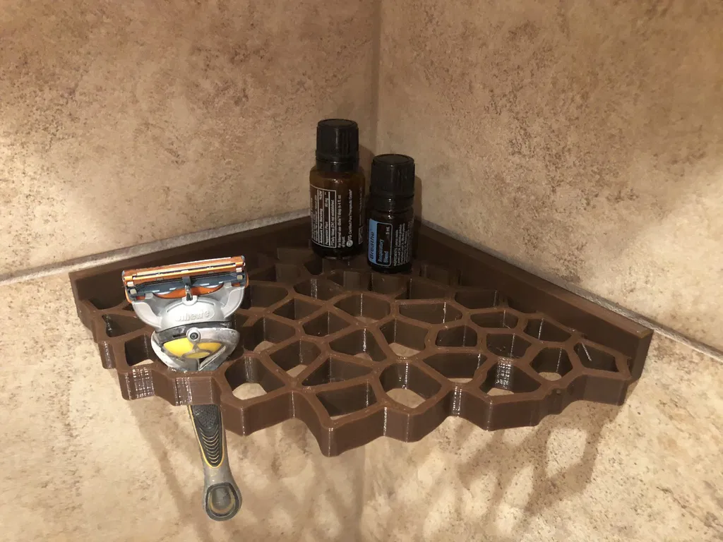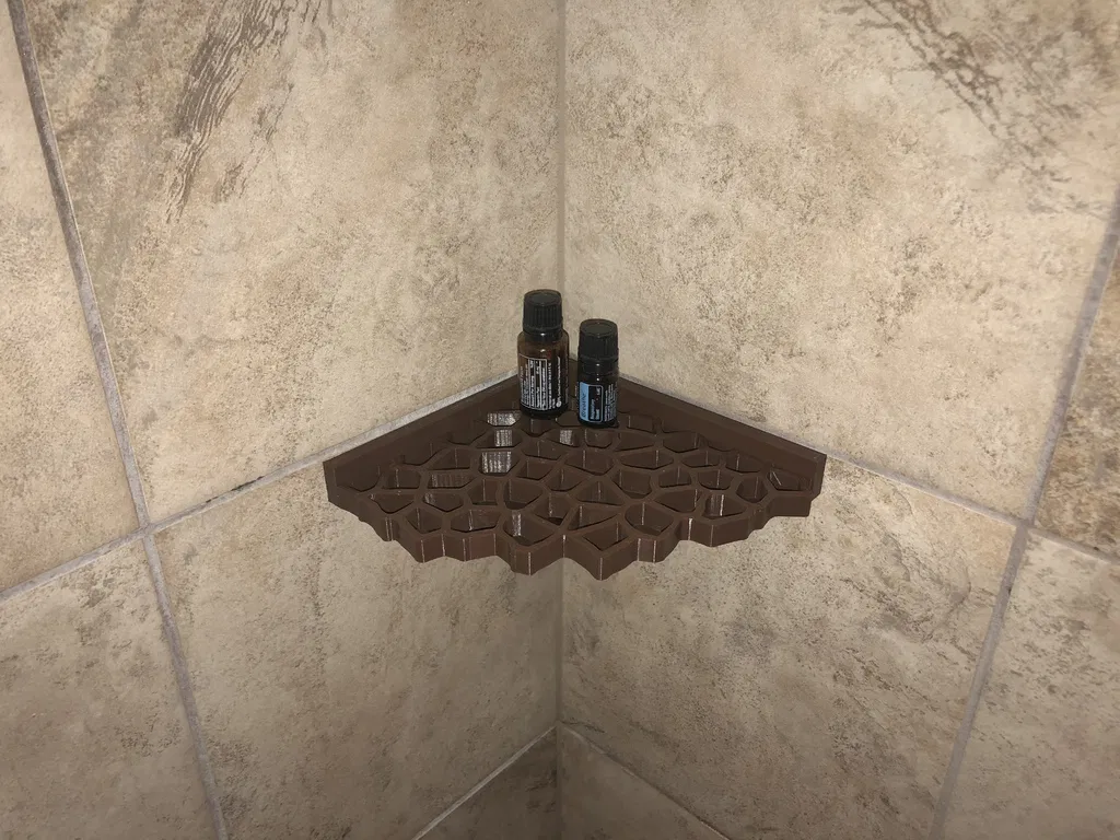 Khay đựng xà bông tắm được chỉnh sửa hai bên cho sát tường và scale bự hơn để đựng được nhiều đồ. Infill 100% với nhựa PLA, không cần support hay raft.