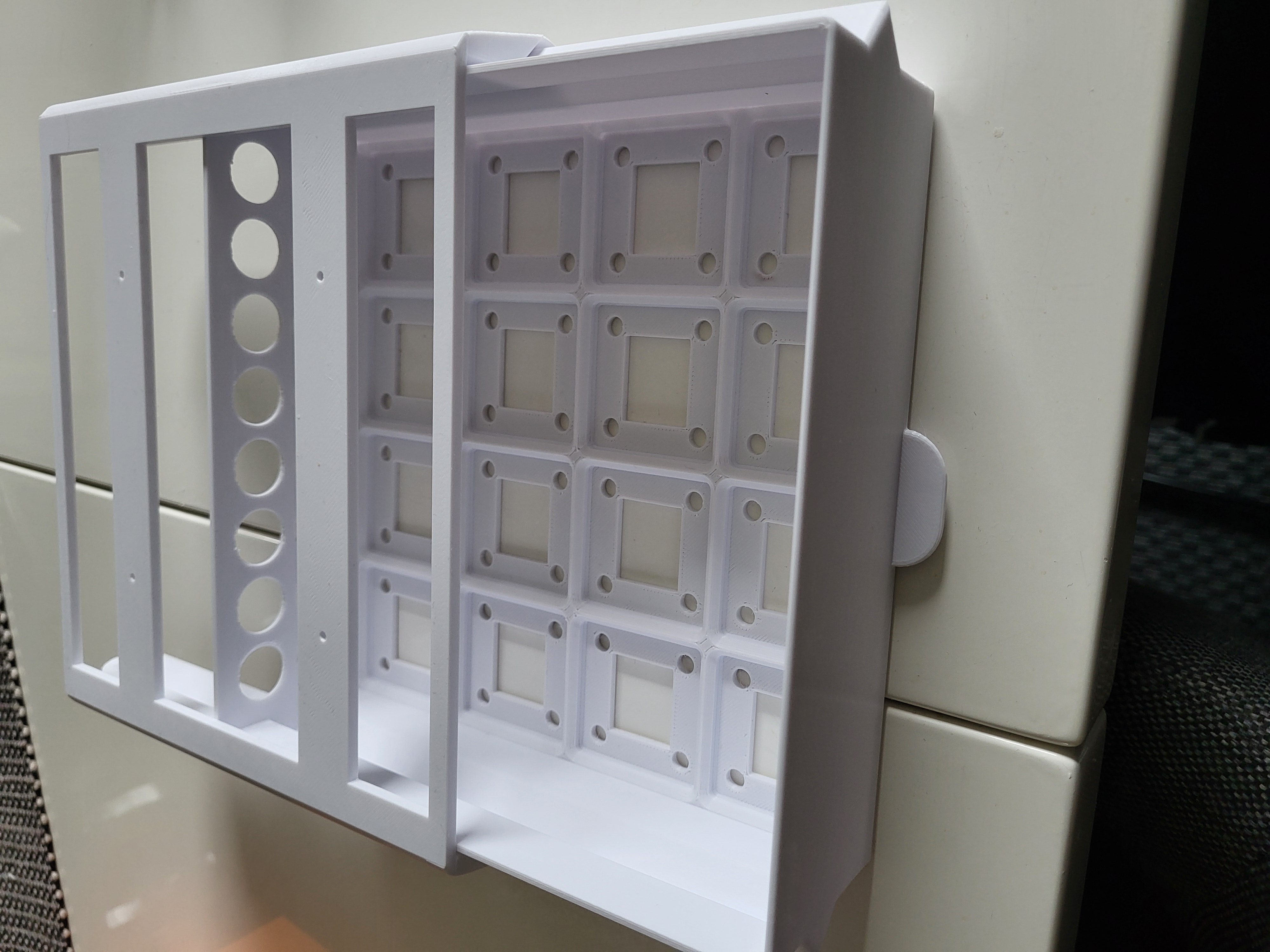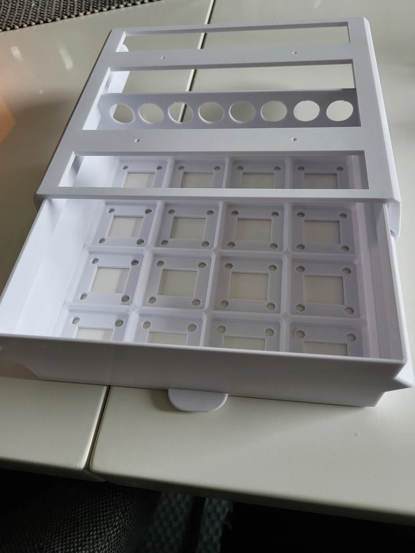 Phiên bản cải tiến của ngăn kéo Gridfinity dưới bàn, với thiết kế có lỗ giúp giảm lượng nhựa in tiêu thụ đáng kể so với bản gốc. Phù hợp cho anh em muốn tối ưu chi phí in ấn mà vẫn đảm bảo công năng sử dụng.