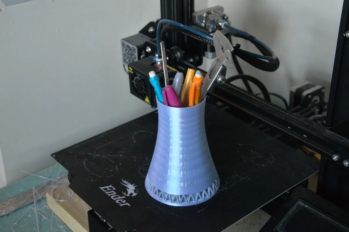 Chỗ cắm bút văn phòng dựa trên thiết kế của tháp giải nhiệt khí quyển hình hyperboloid. Kích thước thu nhỏ 1:1000, thiết kế cứng cáp, không cần support, thích hợp cho mọi bàn làm việc.