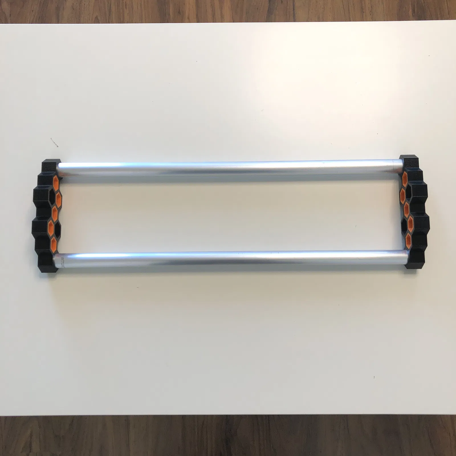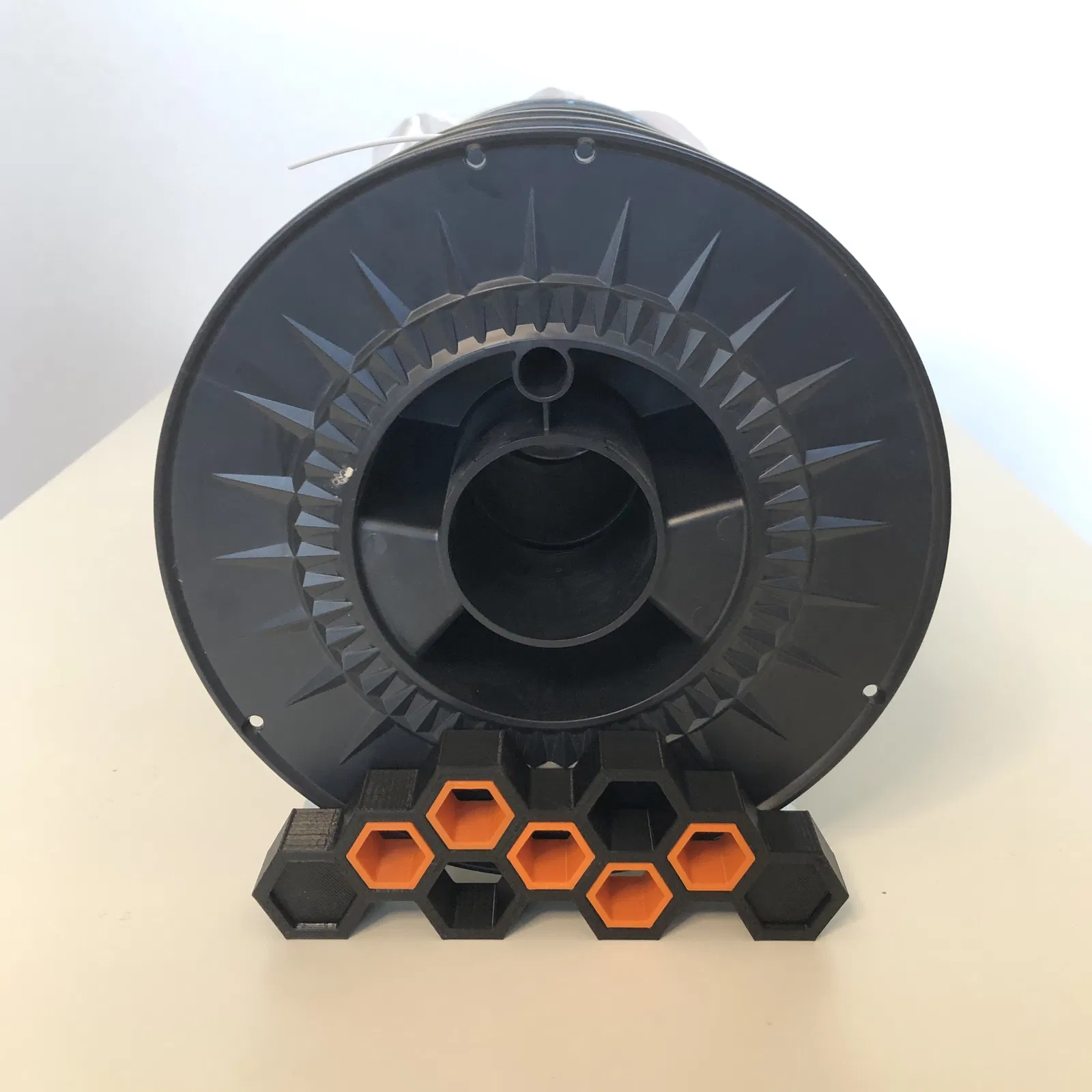 Giá đỡ cuộn dây tóc đơn giản này dùng thanh nhôm đường kính 20mm. Bạn có thể tùy chỉnh màu sắc của phần khảm lục giác để tạo phong cách riêng cho giá đỡ.