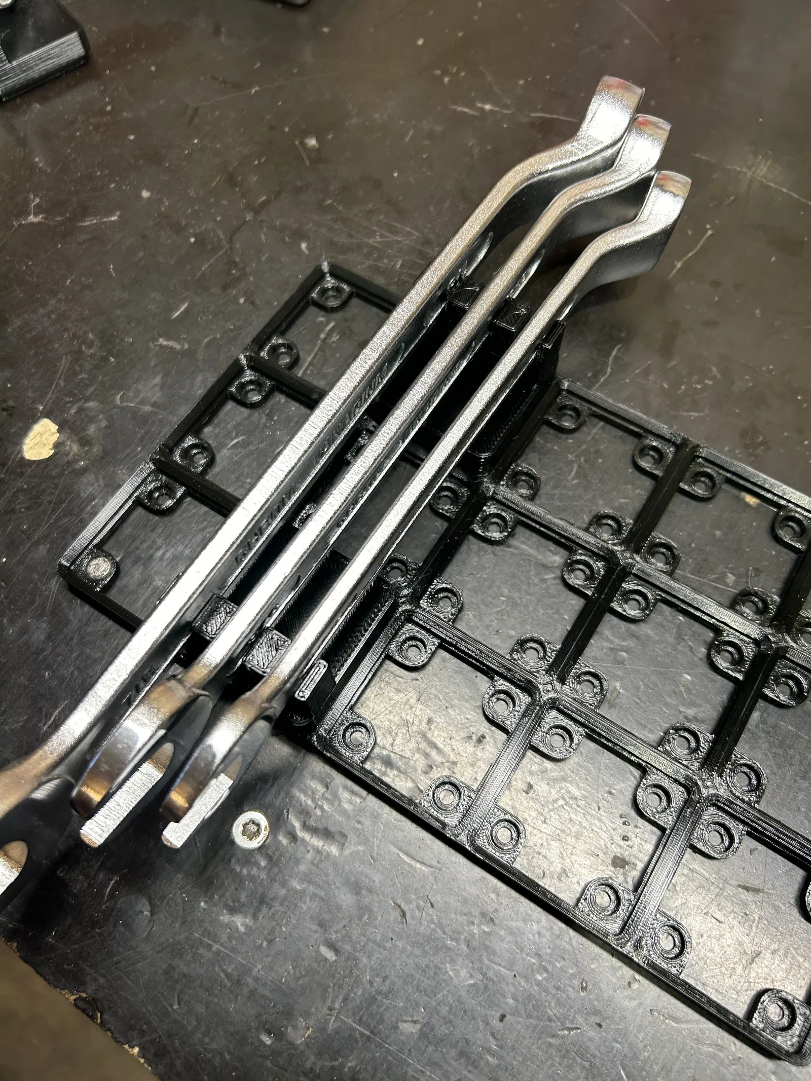 Phiên bản tùy chỉnh cho phép bạn giữ những chiếc cờ lê hoặc mỏ lết lớn hơn. Có thể đựng vừa 3 chiếc cờ lê cỡ lớn. Tặng kèm file nguồn Freecad để bạn tùy chỉnh thêm.