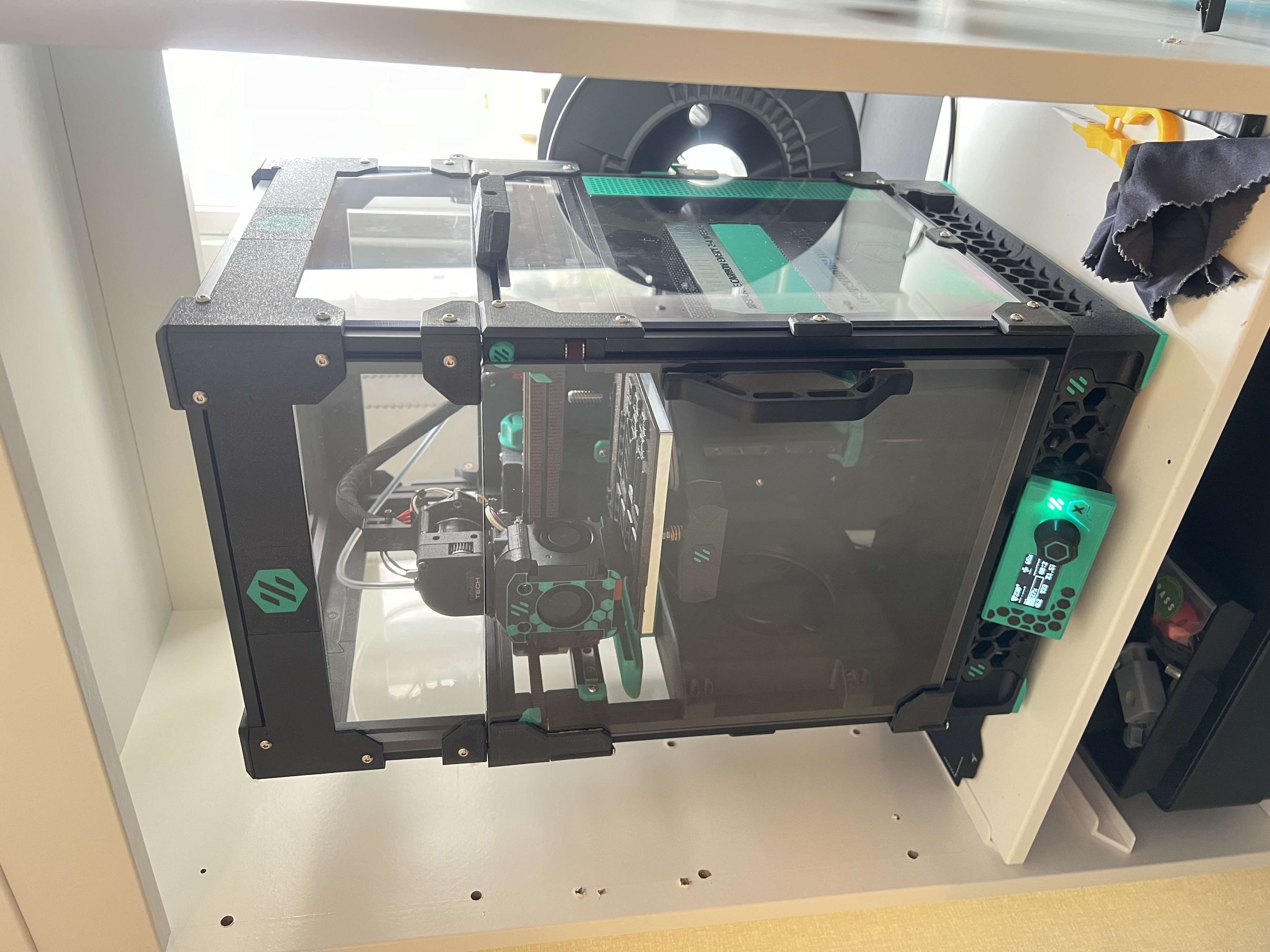 Tôi khuyên bạn nên in bằng ABS/ASA vì buồng in khá nóng và bất kỳ vật liệu nào kém hơn có thể bị cong vênh/mềm theo thời gian.
