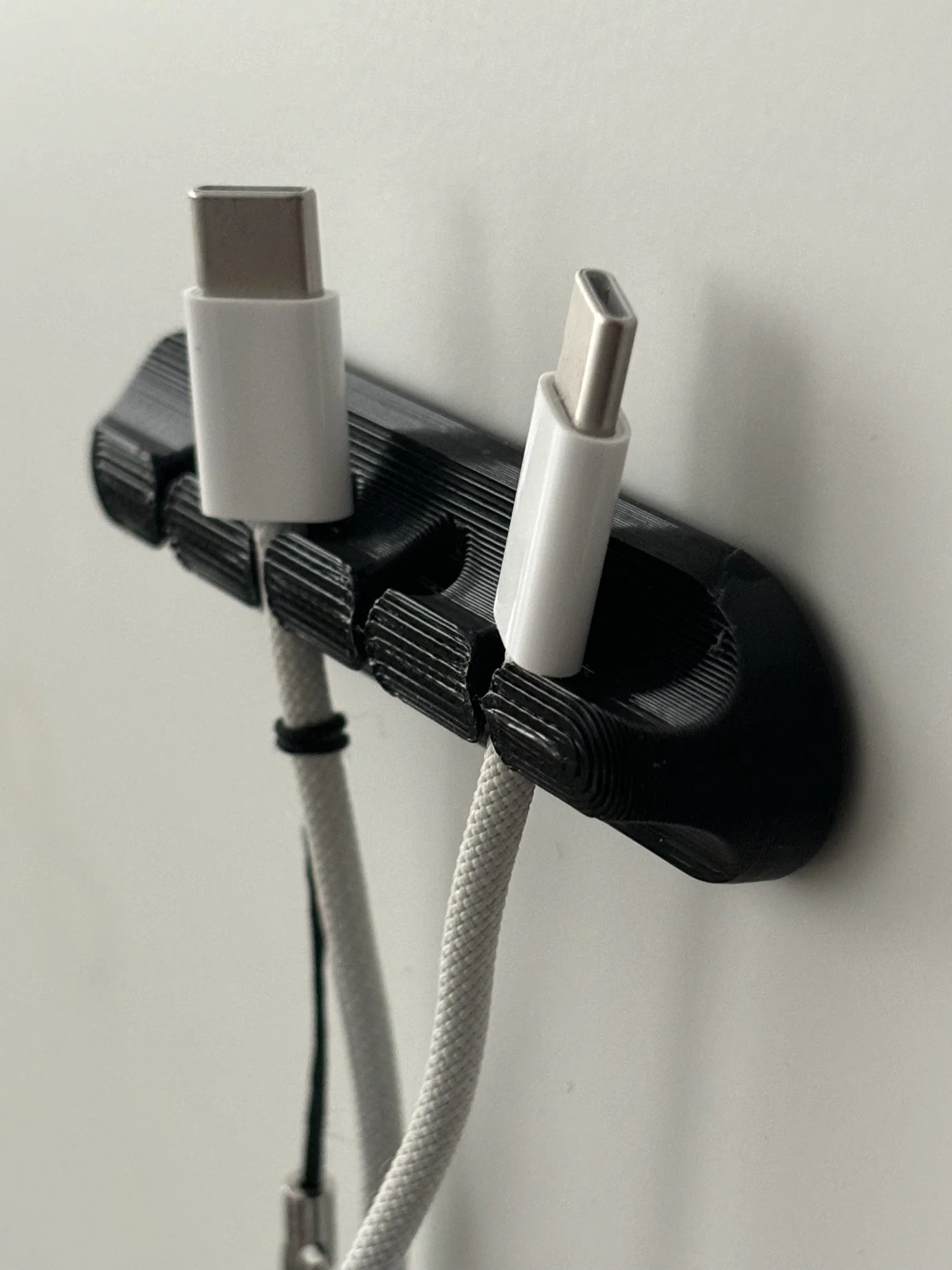Kẹp giữ cáp USB dẻo, dùng sợi TPU để in, giúp quản lý dây cáp sạc USB gọn gàng.