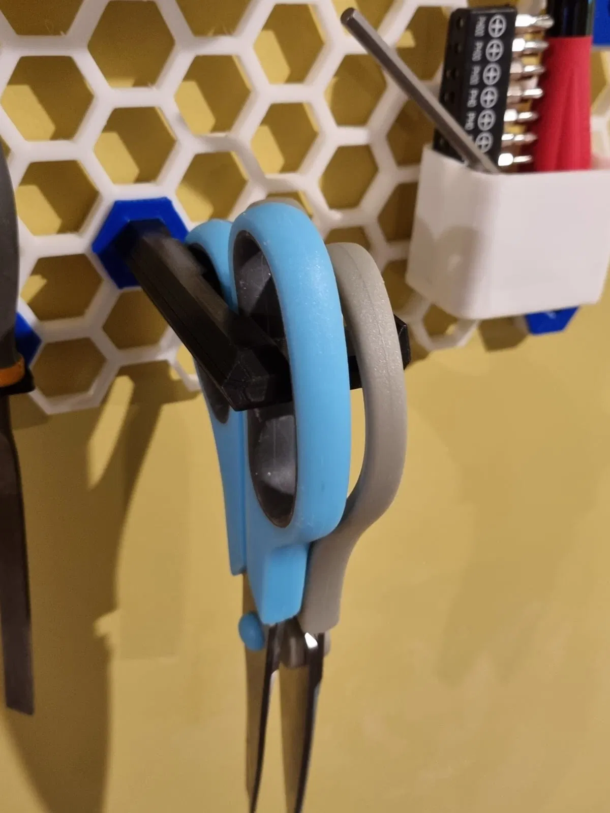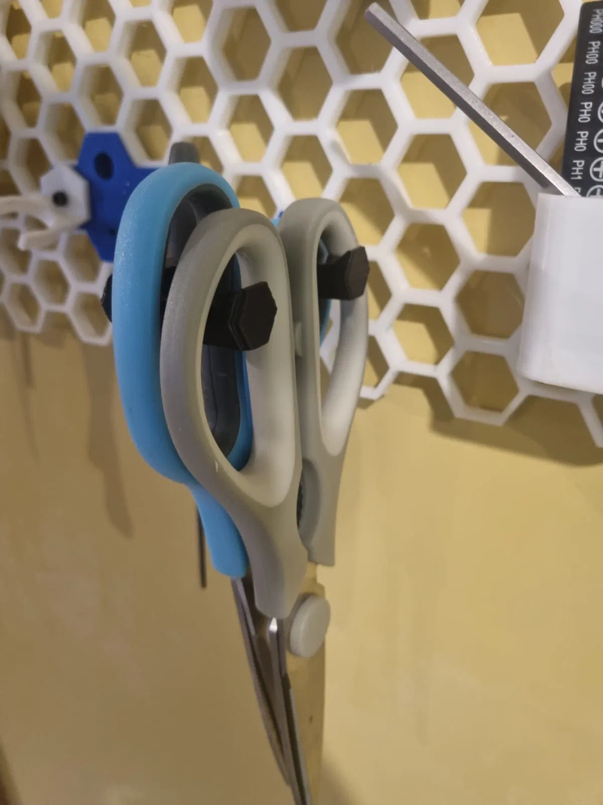 Tao thiết kế cái này để cái kéo không chiếm quá nhiều diện tích trên tường tổ ong. Nó dễ dàng và tiện lợi khi sử dụng và cũng rất dễ in.