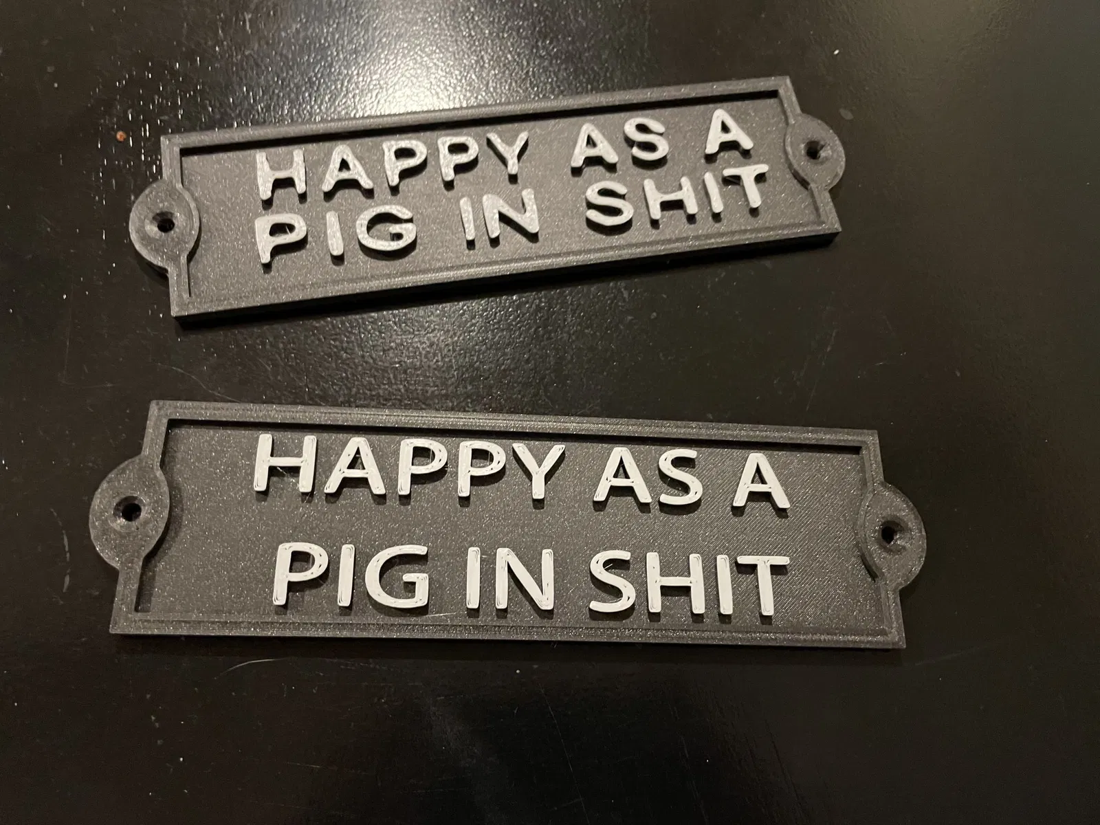 Một tấm biển/ký hiệu đọc "Hạnh phúc như một con lợn trong shit", hoàn hảo cho một món quà sinh nhật hoặc bàn làm việc!