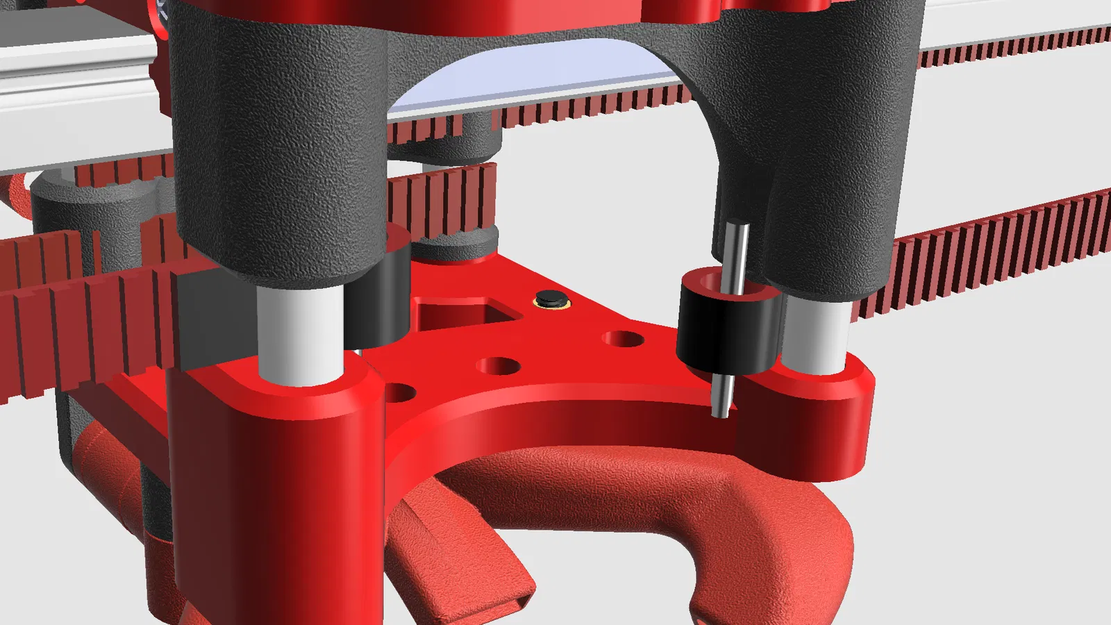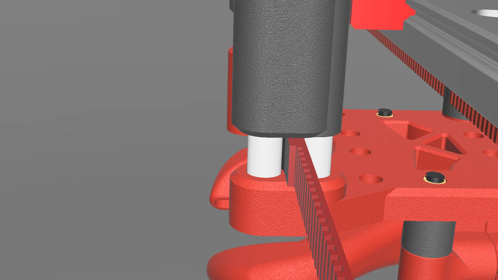 Tôi đã thực hiện một vài thay đổi cho phần đầu in để tận dụng 2 ốc đệm ở mỗi bên, loại bỏ việc sử dụng kẹp dây curoa. Luồn dây curoa vào giữa các ốc đệm, giống như các phiên bản CNC, và dùng sợi dây nhỏ để cố định nó. Phần thân phía sau sử dụng cùng một bộ phận nhưng thay vì kẹp dây curoa, giờ tôi dùng dây rút nhựa vì nó không nhô ra ngoài tấm trên và dưới của đầu in. Tầm di chuyển X tối đa trước đây với kẹp dây curoa = 317mm. Tầm di chuyển X tối đa hiện tại = 340mm.