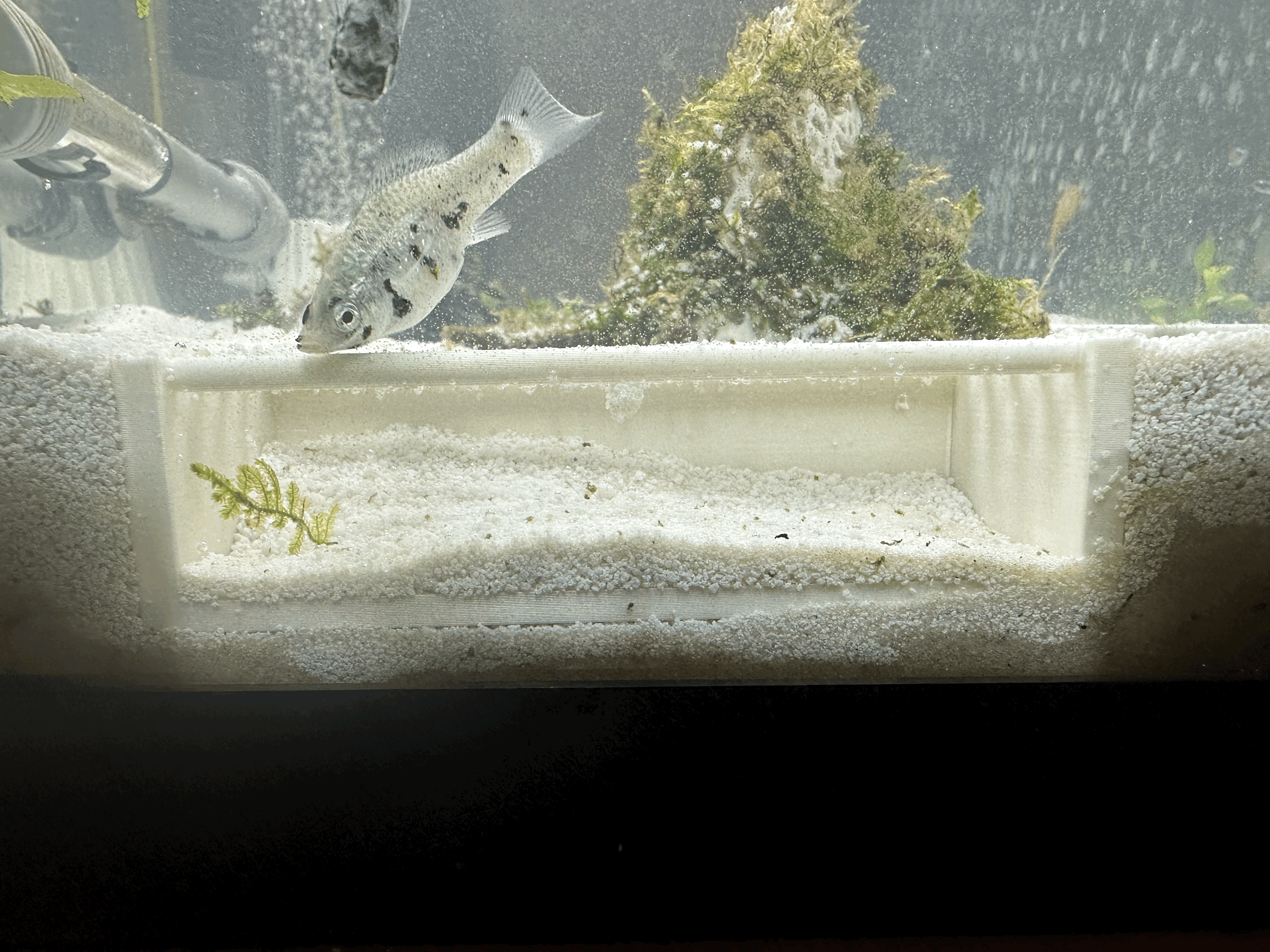 Đây là một không gian để mấy em tép (hoặc cá như em cá Lưỡng Mang của tụi mình) tụ tập mà không bị mấy con cá lớn quấy rầy. Nó cũng tạo thêm chỗ ẩn nấp cho mấy em ăn đáy nhưng mà mình vẫn nhìn thấy được.