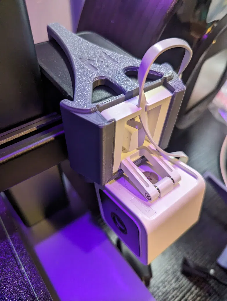 Tui đã muốn có một cái camera để theo dõi từ xa cái máy AnkerMake M5C của tui lâu lắm rồi, nên tui đã tạo ra cái này. Tui có nhiều cái camera Wyze rẻ tiền, nhẹ tênh và nói chung là tui thích nó. Nó nằm trên đỉnh của cái thanh trượt bên phải và hỗ trợ: