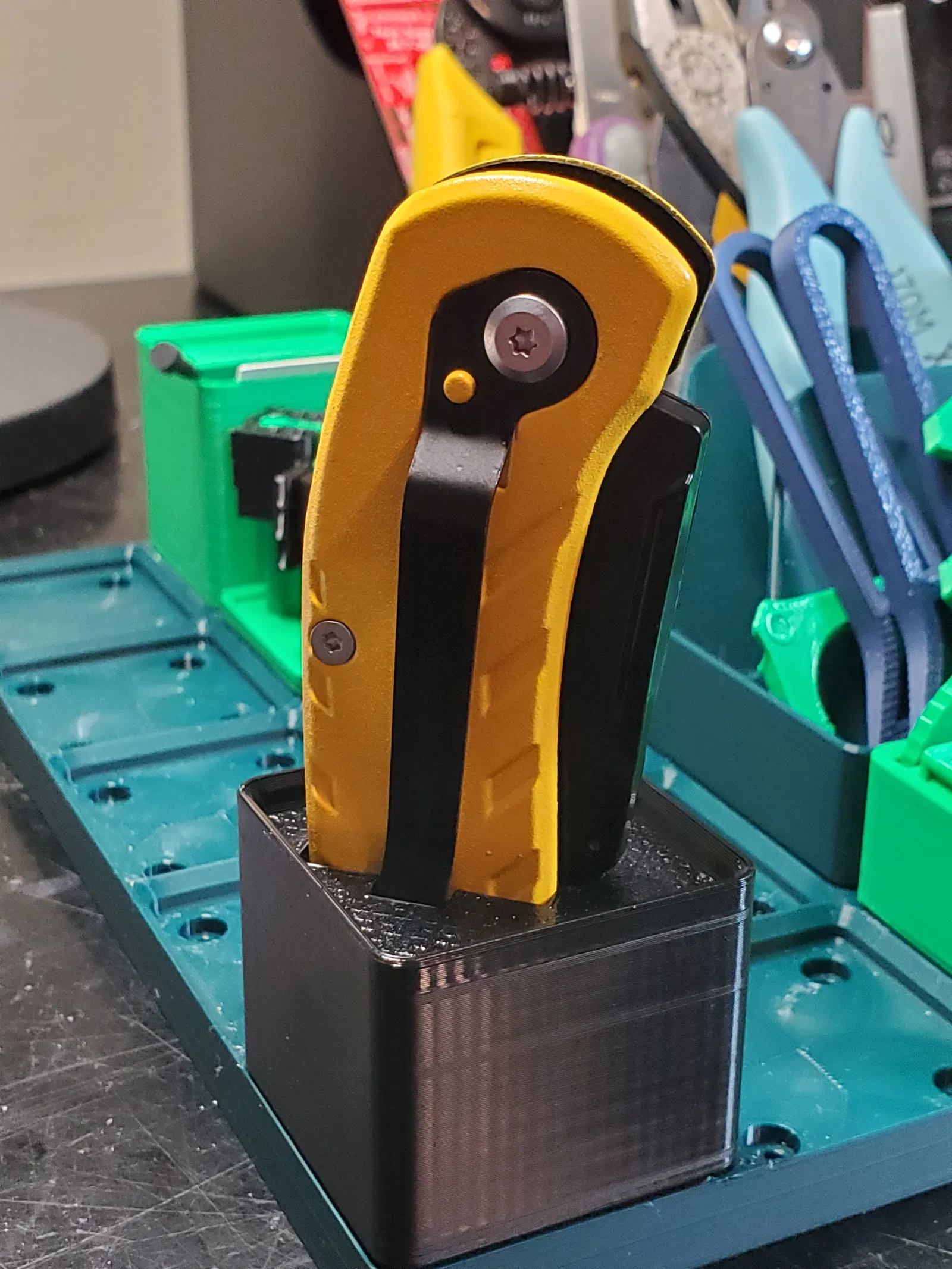 Hộp Gridfinity để đựng dao tiện ích Stanley STHT10424 của bạn. Đây là mẫu đầu tiên mình chia sẻ! Dao được xoay 45 độ để vừa vặn và không cấn, nắp lưỡi dao gấp lại giúp cố định.
