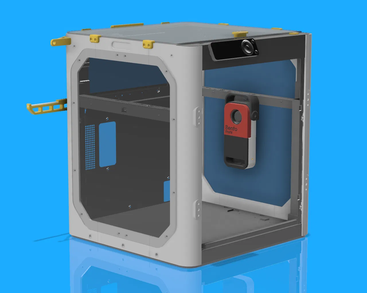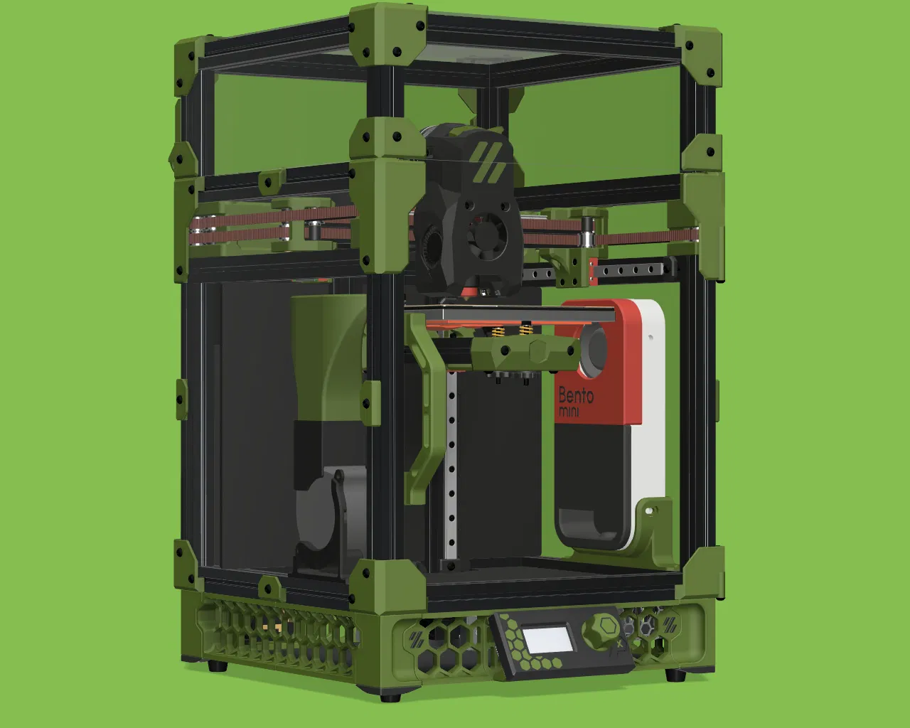 Xin giới thiệu Bento mini. Nhỏ gọn, mạnh mẽ và trông giống như một hộp cơm bento nhỏ cho trẻ em. Kích thước mặt trước tương đương với iPhone 10. Nó sử dụng quạt thổi 6028 mạnh mẽ để đẩy không khí qua các viên than. Có 4 lỗ gắn để tùy chỉnh các giá đỡ cho các máy in có vỏ khác nhau.
