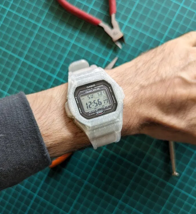 Dây đeo thay thế cho mẫu Casio G-Shock GW5000 cổ điển. Mẫu dây được thiết kế tỉ mỉ, cân bằng giữa độ dẻo và độ bền, in bằng TPU trên máy Prusa MK4. Chia sẻ kinh nghiệm in ấn và sử dụng thực tế.