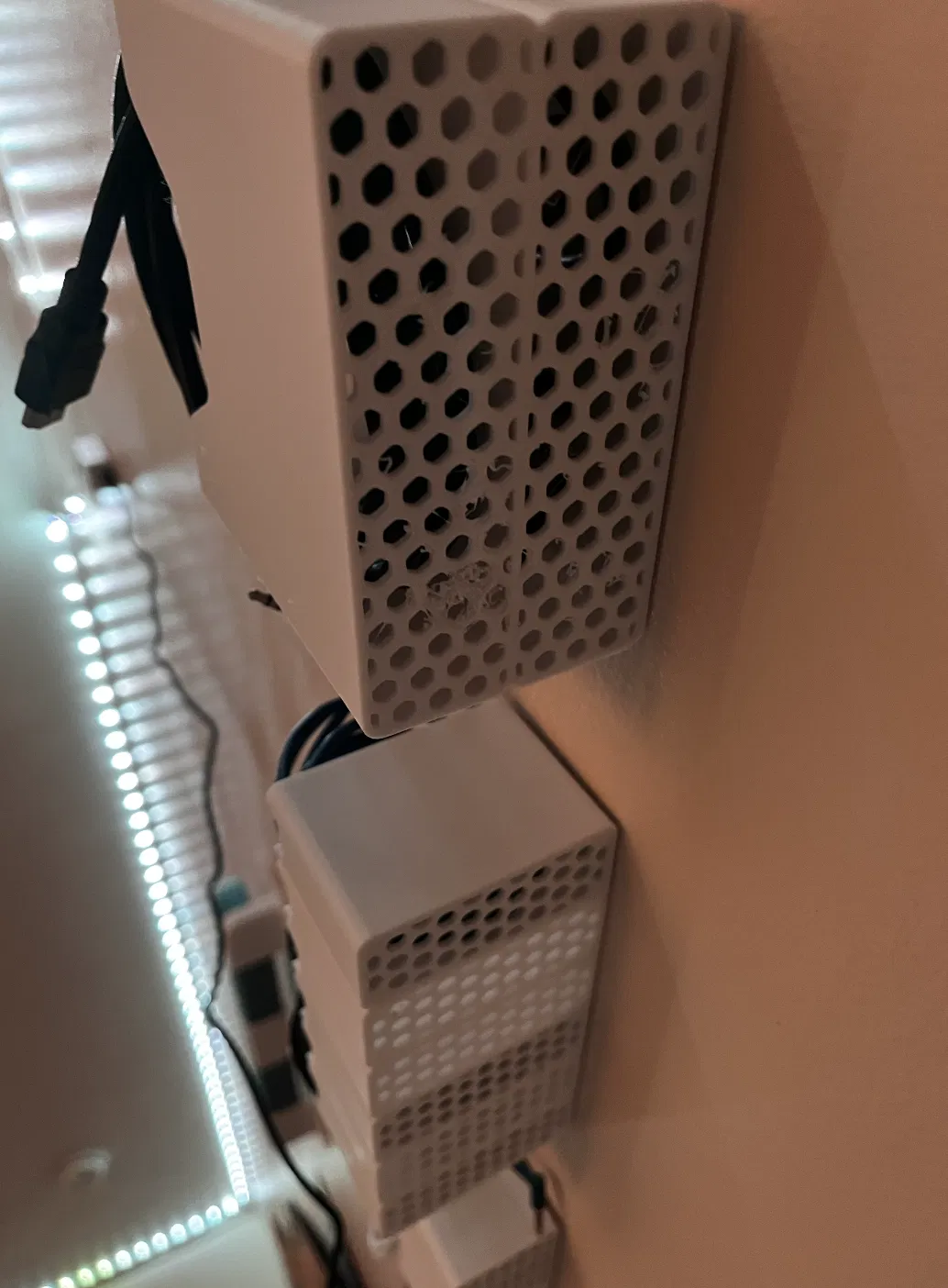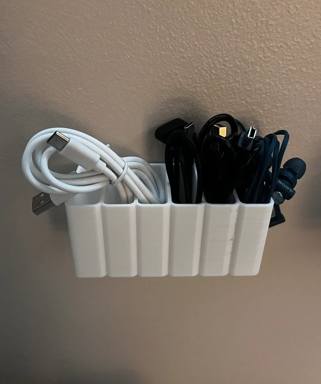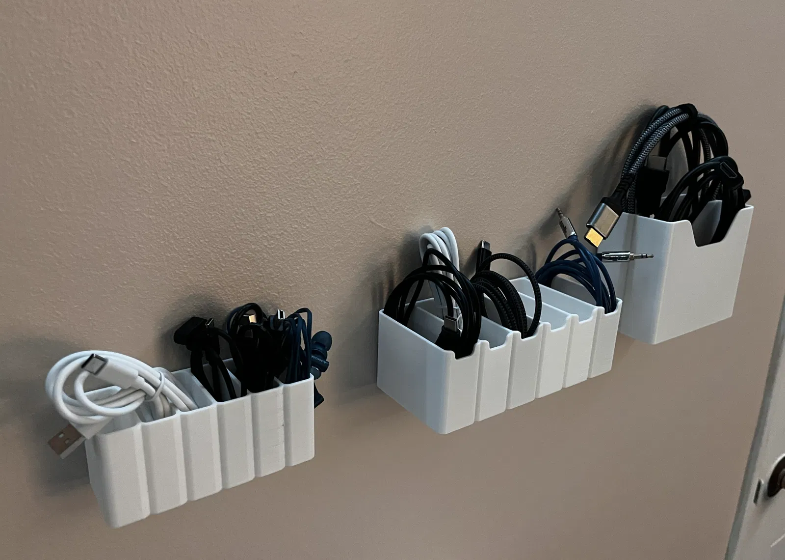 Hộp đựng dây cáp treo tường với 3 kích cỡ khác nhau. Xem bản vẽ để biết kích thước. Dùng băng dính hai mặt để gắn.
