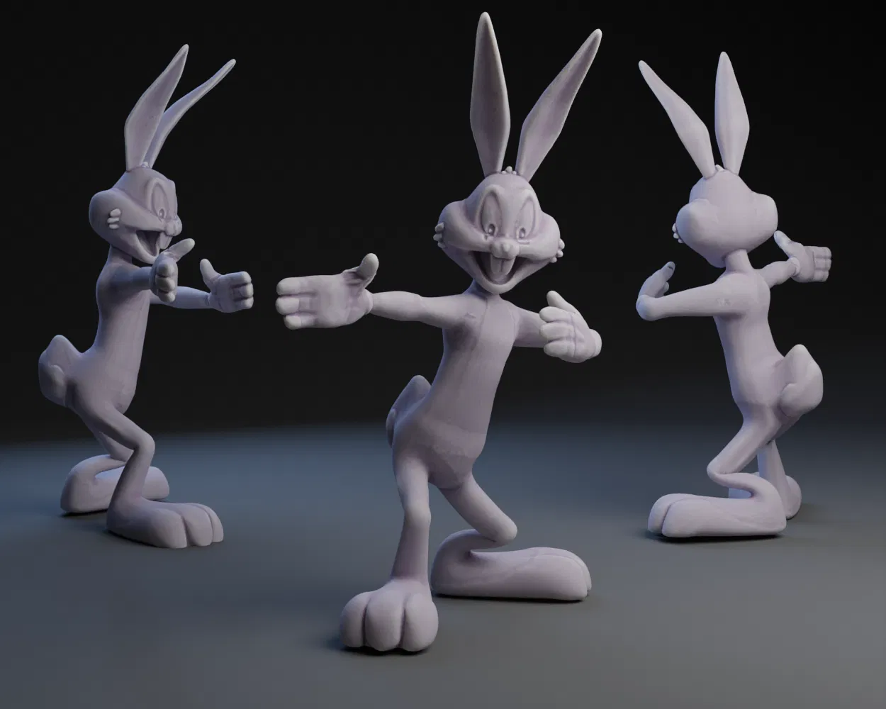 Tải xuống mô hình 3D Bugs Bunny, chú thỏ hoạt hình kinh điển. Hoàn hảo cho những người hâm mộ Looney Tunes và các dự án in 3D sáng tạo.