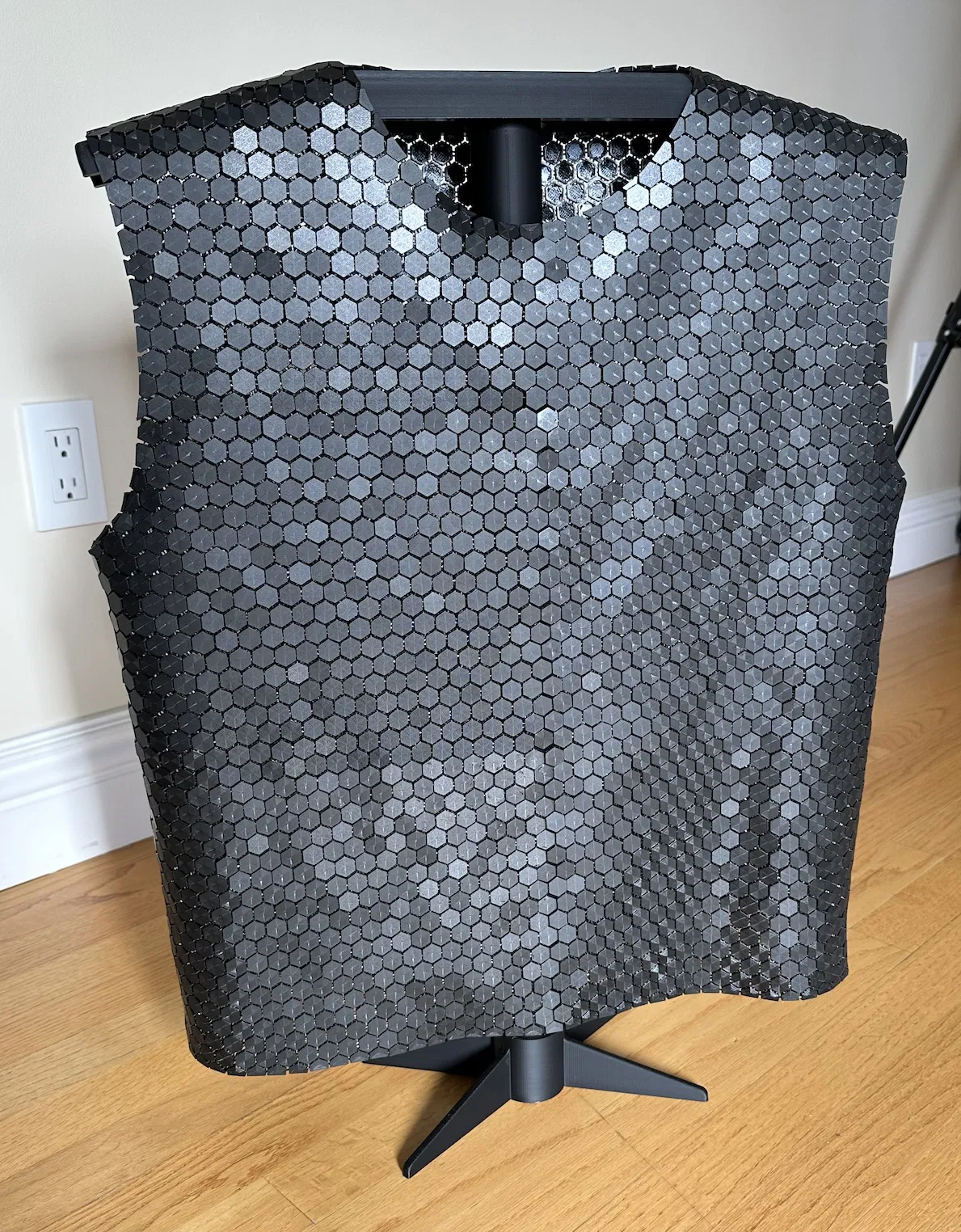 V2 chắc chắn hơn và dễ lắp ráp hơn (mặc dù nó yêu cầu máy Prusa XL). Tôi xuất bản phiên bản này "nguyên trạng" cho những ai đủ dũng cảm để tự in nó. Phiên bản áo này yêu cầu lắp ráp thủ công và khâu chỉ sáp. Vui lòng chỉ thực hiện nếu bạn sẵn sàng cho một thử thách và đã có nhiều kinh nghiệm in 3D. Bạn đã được cảnh báo!