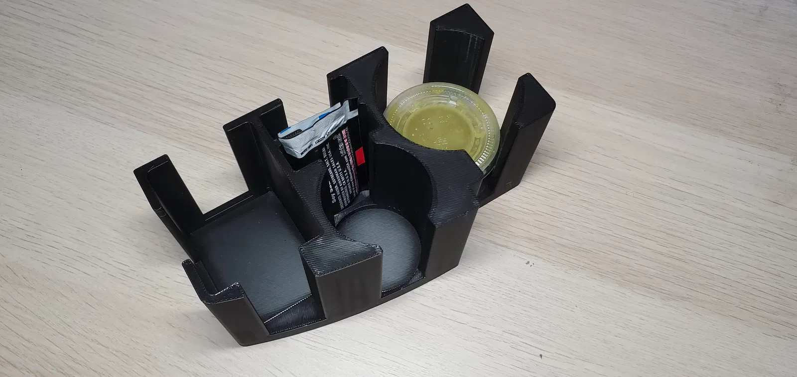 Mấy bồ có thích giữ lại mấy cái sốt đồ ăn nhanh không? Cái hộp này giúp bạn cất giữ gọn gàng 2 loại ly tròn, 1 ly vuông và 2 gói sốt, khỏi bay lung tung trong tủ lạnh nữa. Tui làm cho gia đình tui, giờ thì ai cũng có chỗ đựng sốt riêng, ngăn nắp lắm nha!