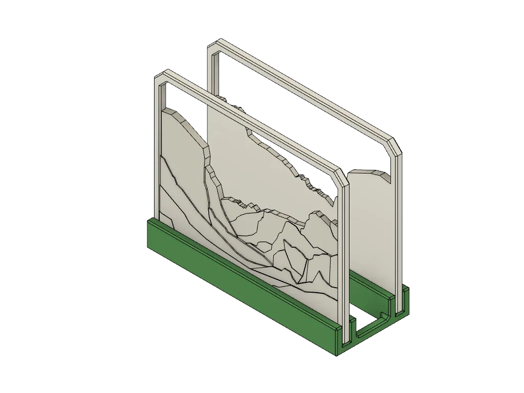 Phần Đế Có Khe Hở (Base With Clearance) có khe hở 0.1 mm cho các miếng hông (khe hở 6.1 mm cho miếng hông dày 6.0 mm). Đây là cái đế mình đã in. Miếng hông vừa khít nhưng hơi lỏng hơn mình mong muốn. Điều này có nghĩa là chúng có thể trượt vô tình dọc theo chiều dài của khe cắm hoặc có thể nhấc ra khỏi khe cắm khi rút khăn ăn nếu bạn xếp khăn ăn quá chặt vào đế.