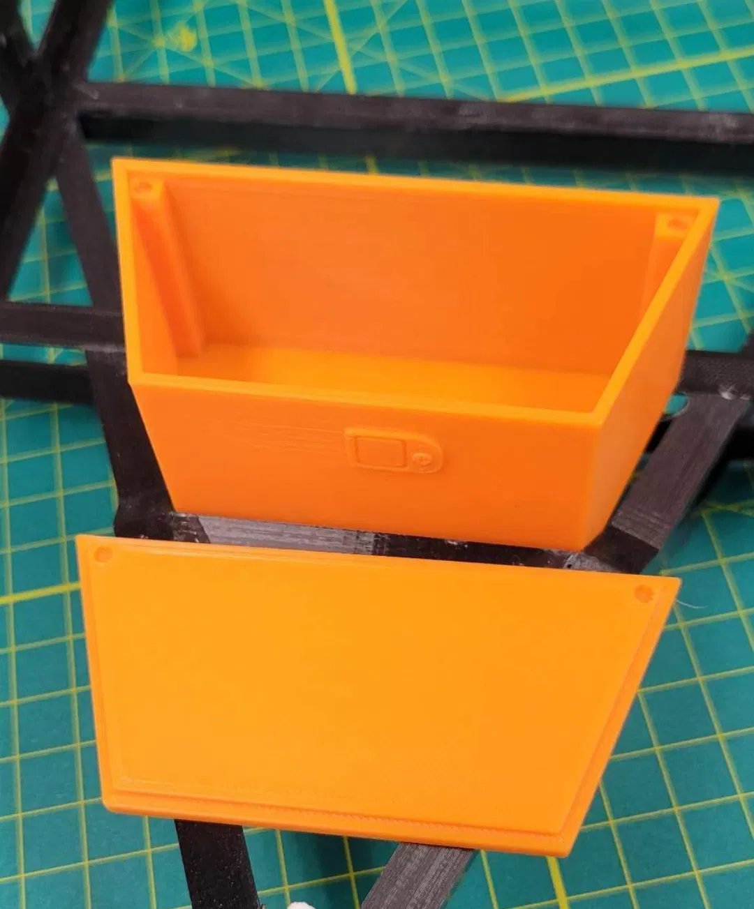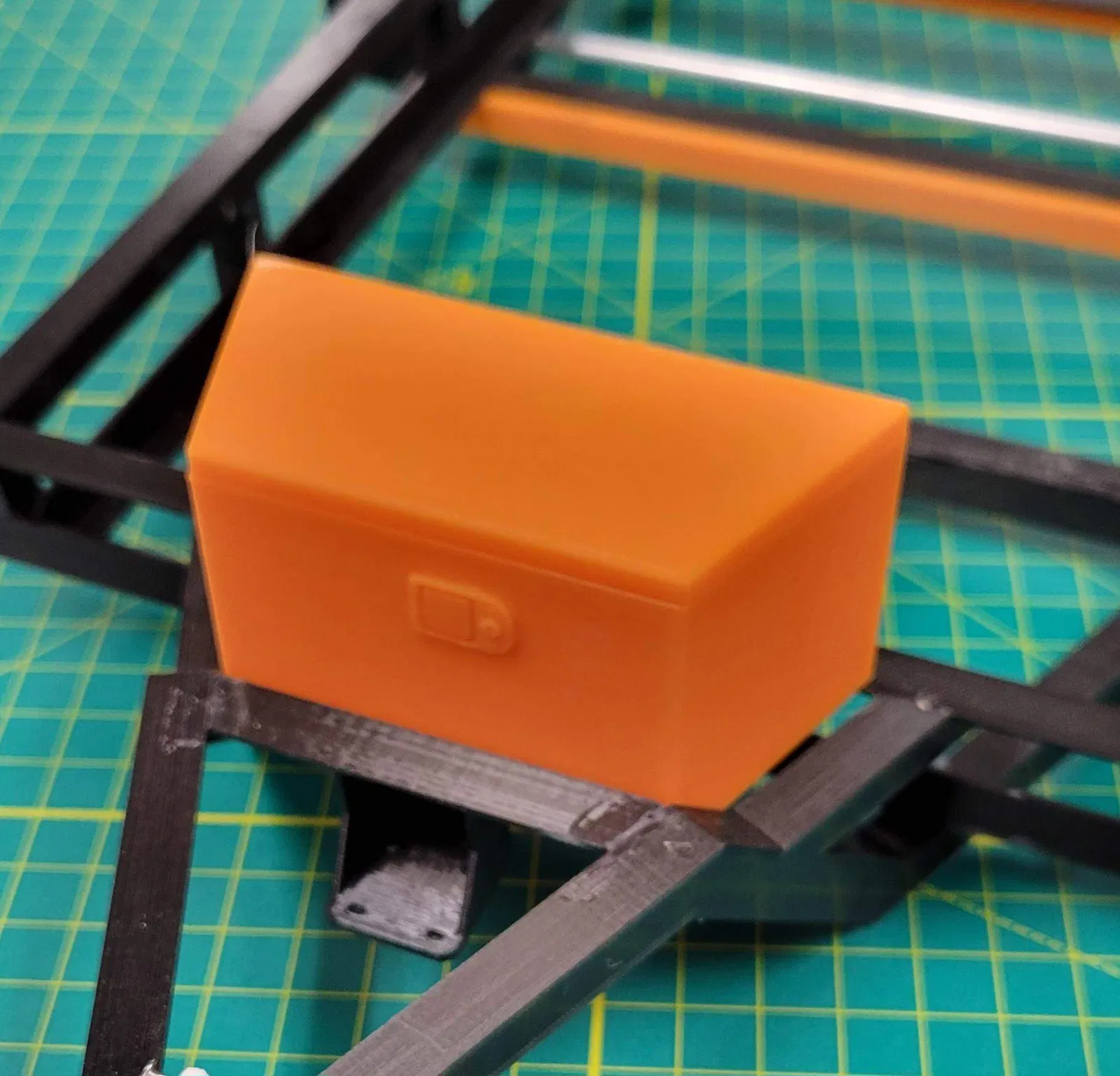 Hộp dụng cụ rơ-moóc tỉ lệ 1/10. Nắp/hộp có lỗ tùy chọn để gắn nam châm nhỏ nếu bạn muốn đóng chắc chắn hơn, tôi đã dùng cái này https://a.co/d/7kLJESv