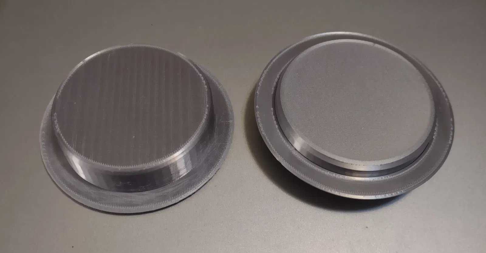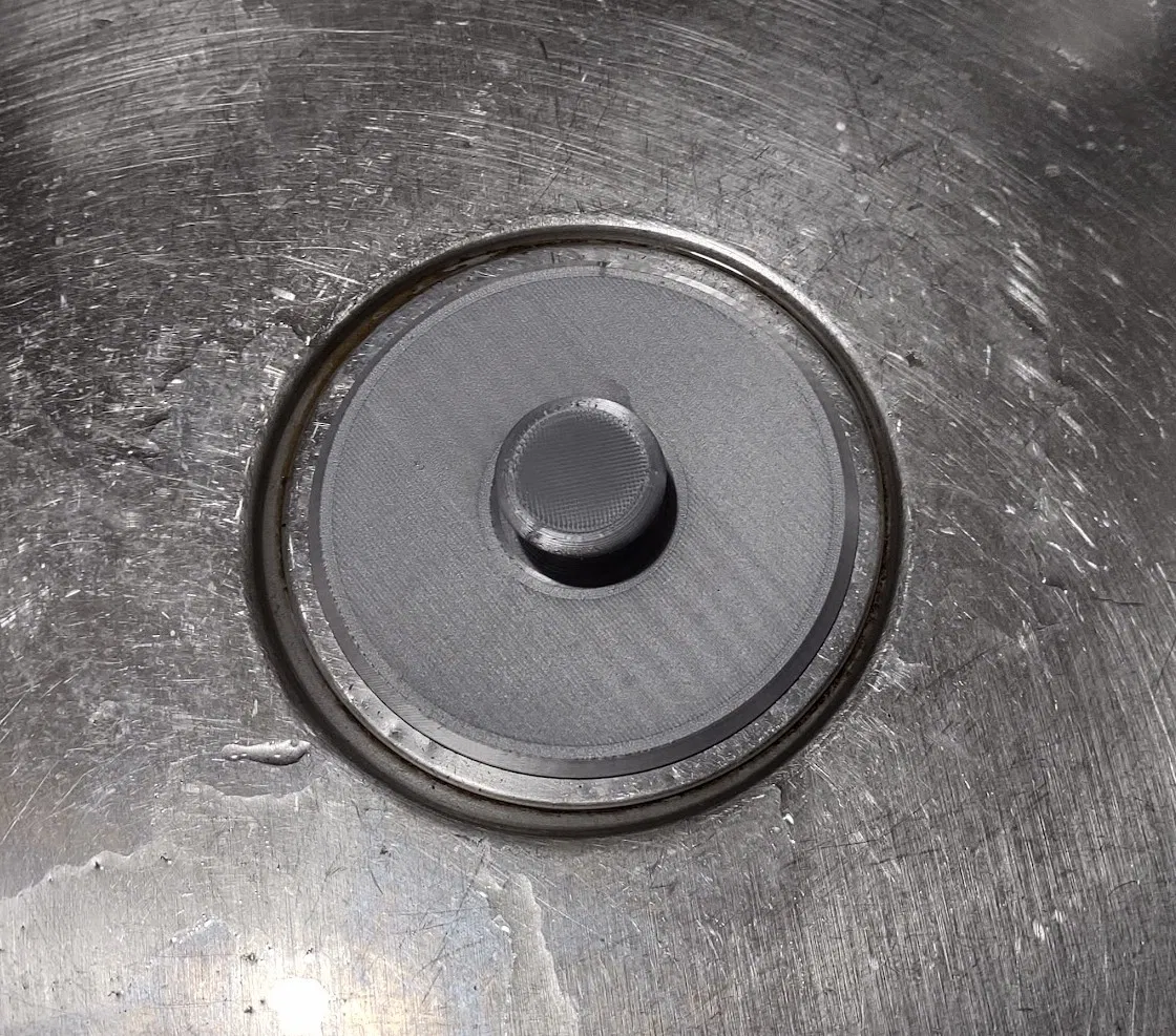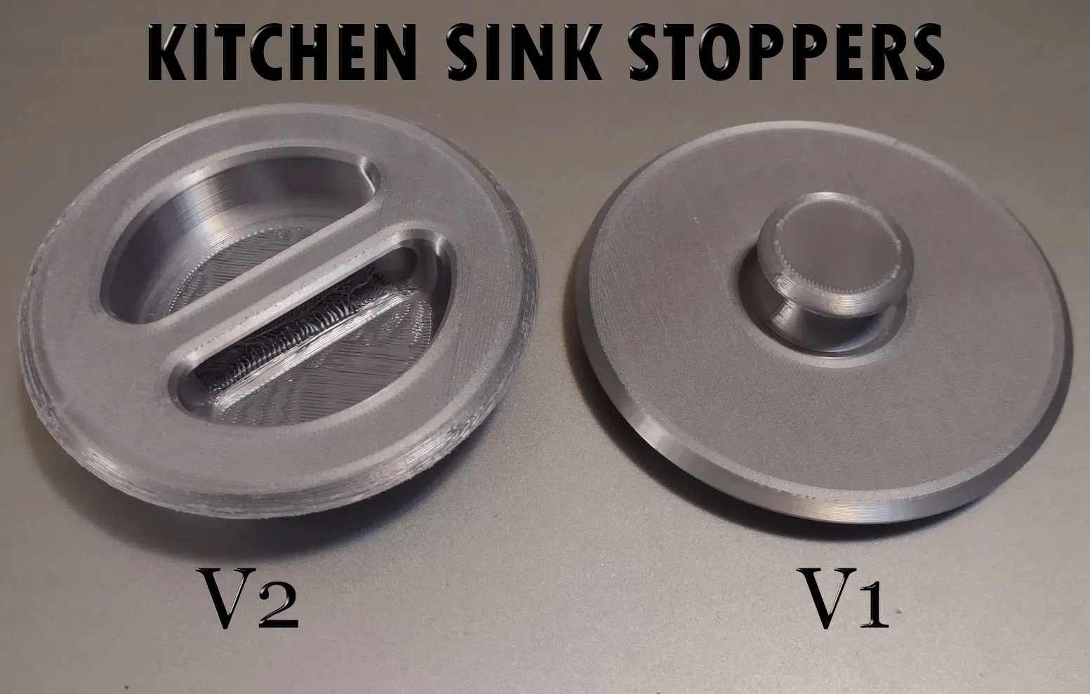 Có hai phiên bản, được thiết kế để vừa với bồn rửa chén bằng thép không gỉ. Các nút này thoát ra khỏi nắp ở khoảng 78.5mm theo một góc nghiêng. Chất liệu PLA cần in 100% độ đặc và hơi lỏng nếu dùng trong nước nóng.