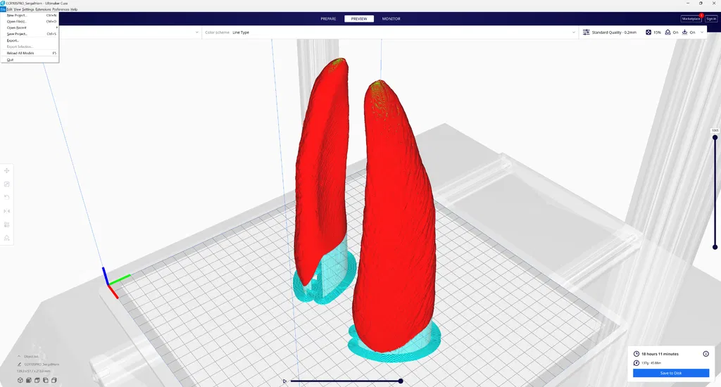 Bạn cần in với chế độ support (trừ các file "răng").