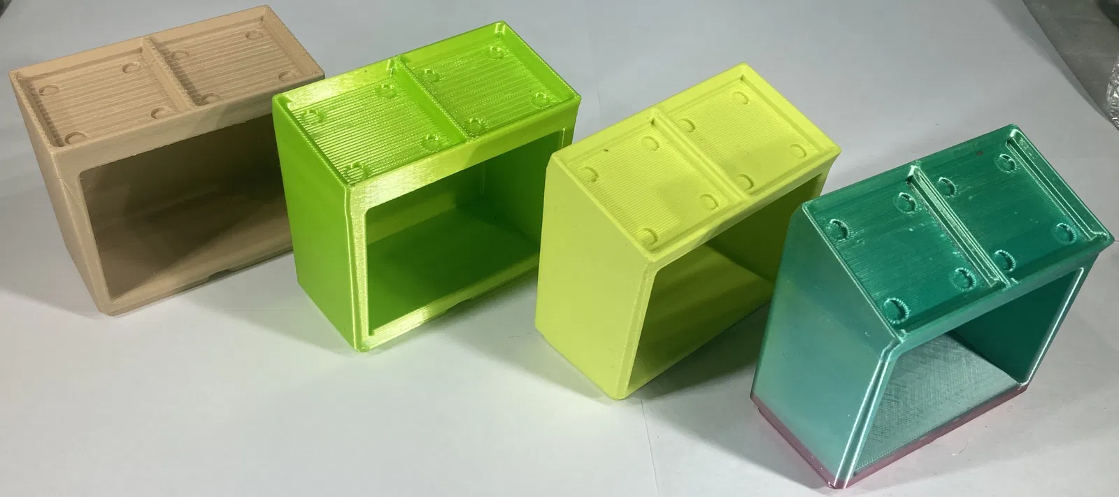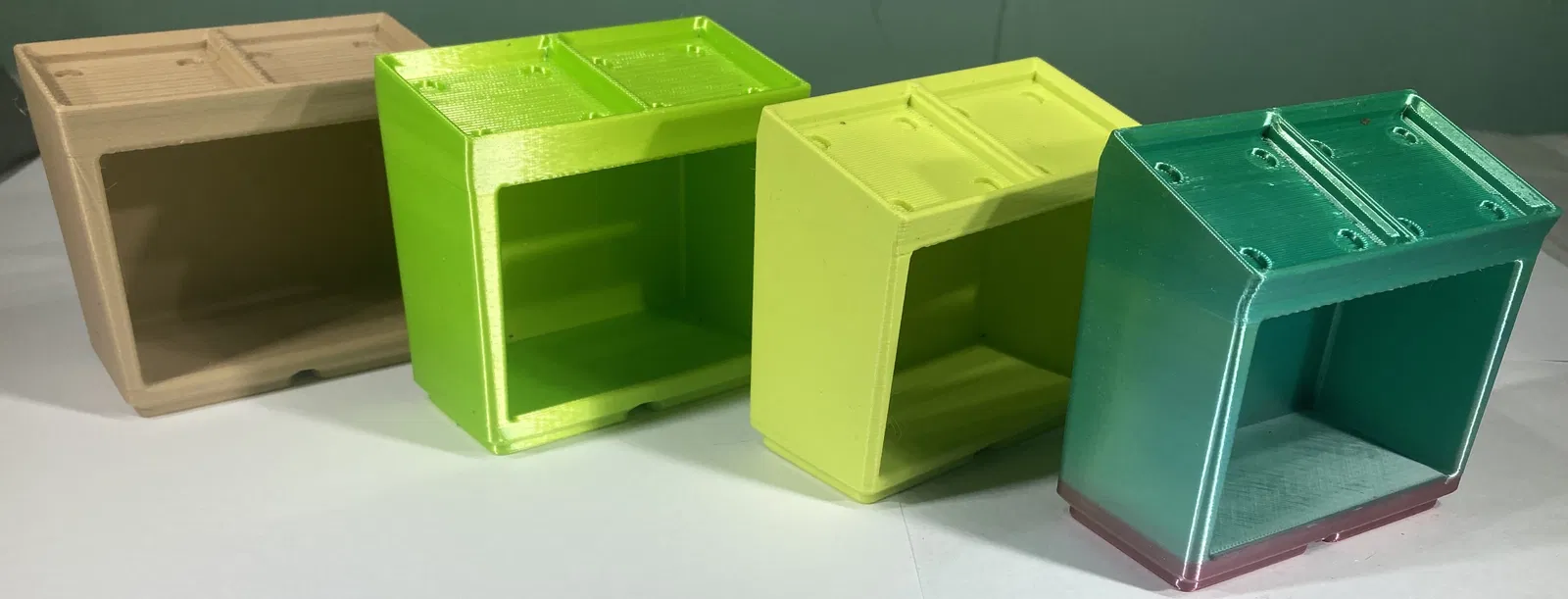 Đây là các module gridfinity 1x2. Chức năng chính của chúng là một đế cao, nghiêng. Nhưng, chúng cũng có một khoang bên trong để lưu trữ. Điều này có thể hữu ích khi sử dụng gridfinity cho các giá đỡ dụng cụ, hoặc một máy kẹp hoặc đèn, nhưng bạn cũng muốn có một nơi để đặt thứ gì đó quan trọng mà không bị mất, nhưng bạn vẫn có thể nhìn thấy nó.