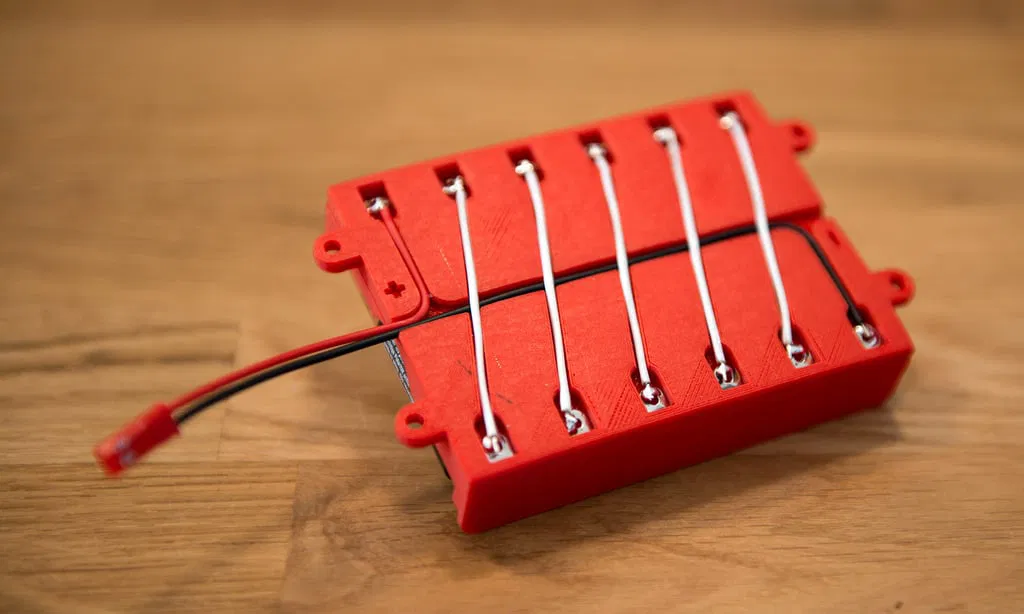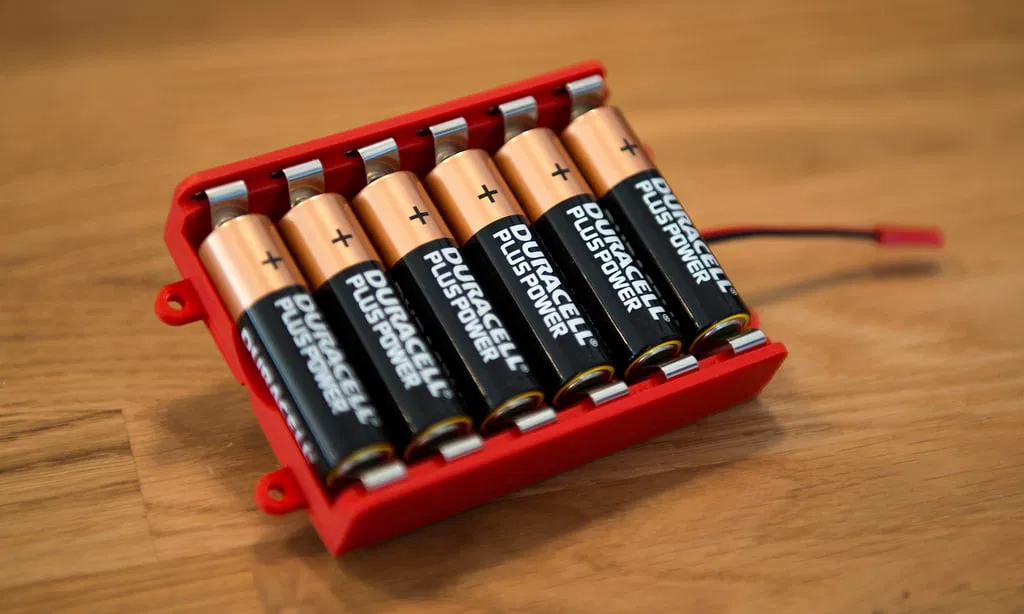 Hộp pin này được thiết kế cho pin AA sử dụng một cái kẹp nhỏ từ Keystone Electronics (mã sản phẩm 5209).