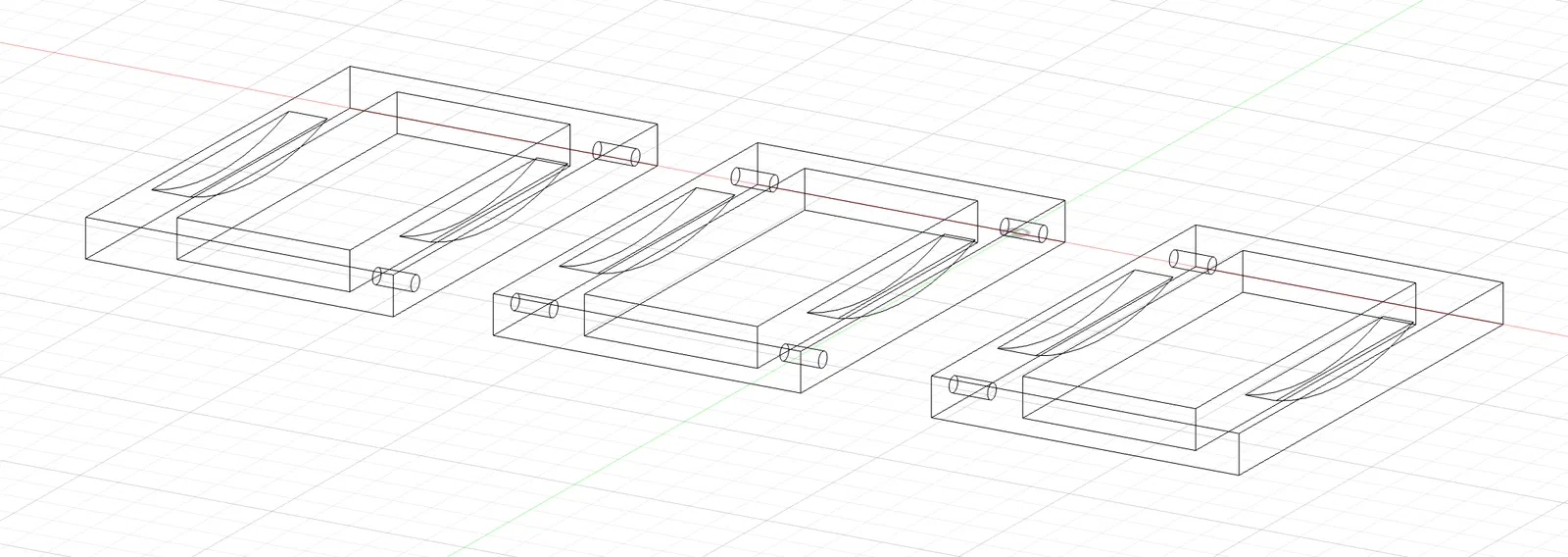 Có hai bộ mẫu. Một bộ cần in các chốt định vị, và bộ còn lại dùng một đoạn dây nhựa dài khoảng 15mm làm chốt định vị. Mấy cái này dự định in nhiều bộ rồi ghép lại với nhau, có cái bên trái (lỗ định vị bên phải), cái ở giữa (lỗ định vị hai bên), và cái bên phải (lỗ định vị bên trái) nha.