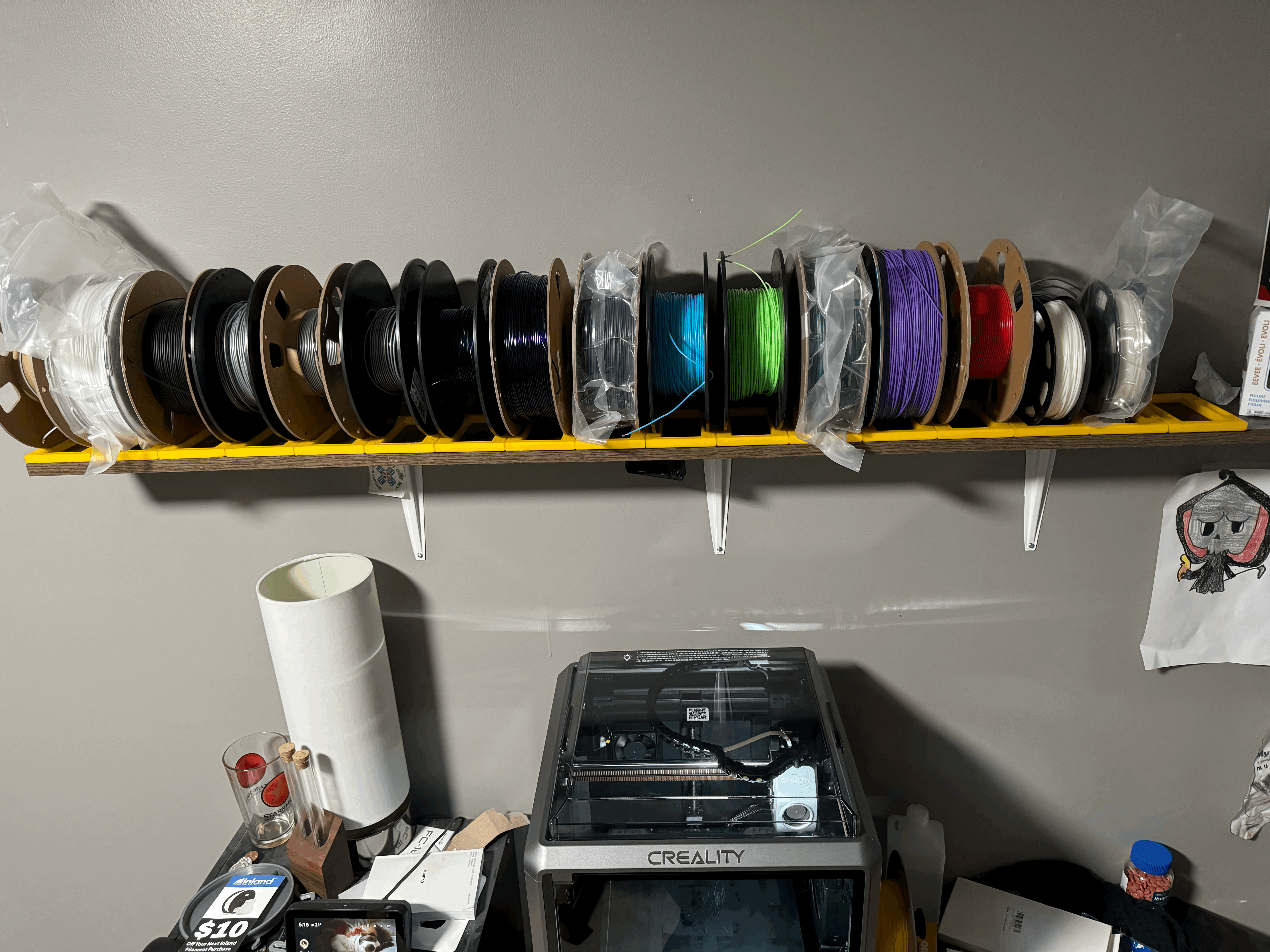Mấy cái này dùng để chứa nhiều cuộn dây nhựa in 3D nha. Nó chứa được hầu hết các cuộn 1kg, với các rãnh có thể chứa được các cuộn có độ rộng từ 62mm đến 70mm. Phần hình chữ nhật bên trong còn có thể cố định được nhiều cuộn dây nhựa từ 250-750g nữa đó.