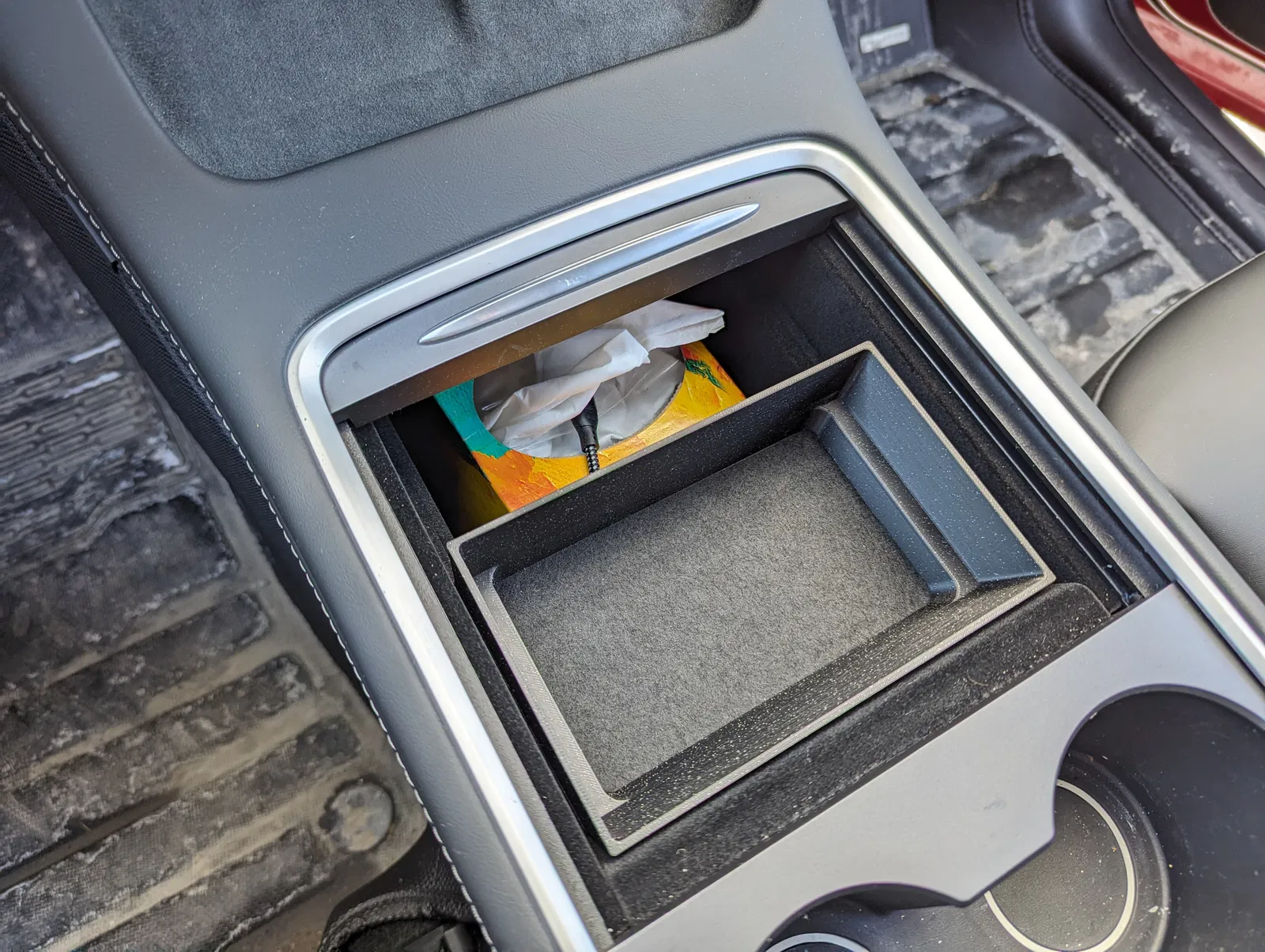 Khay đựng đồ trung tâm đơn giản, xài vừa cho Tesla Model 3/Y. Được thiết kế cho các xe có cửa trượt mới, khay này giúp giữ cho đồ đạc của bạn gọn gàng. Chất liệu ABS hoặc ASA được khuyến nghị để chịu nhiệt tốt. Có thể thêm lớp lót nỉ để tăng thêm sự êm ái.
