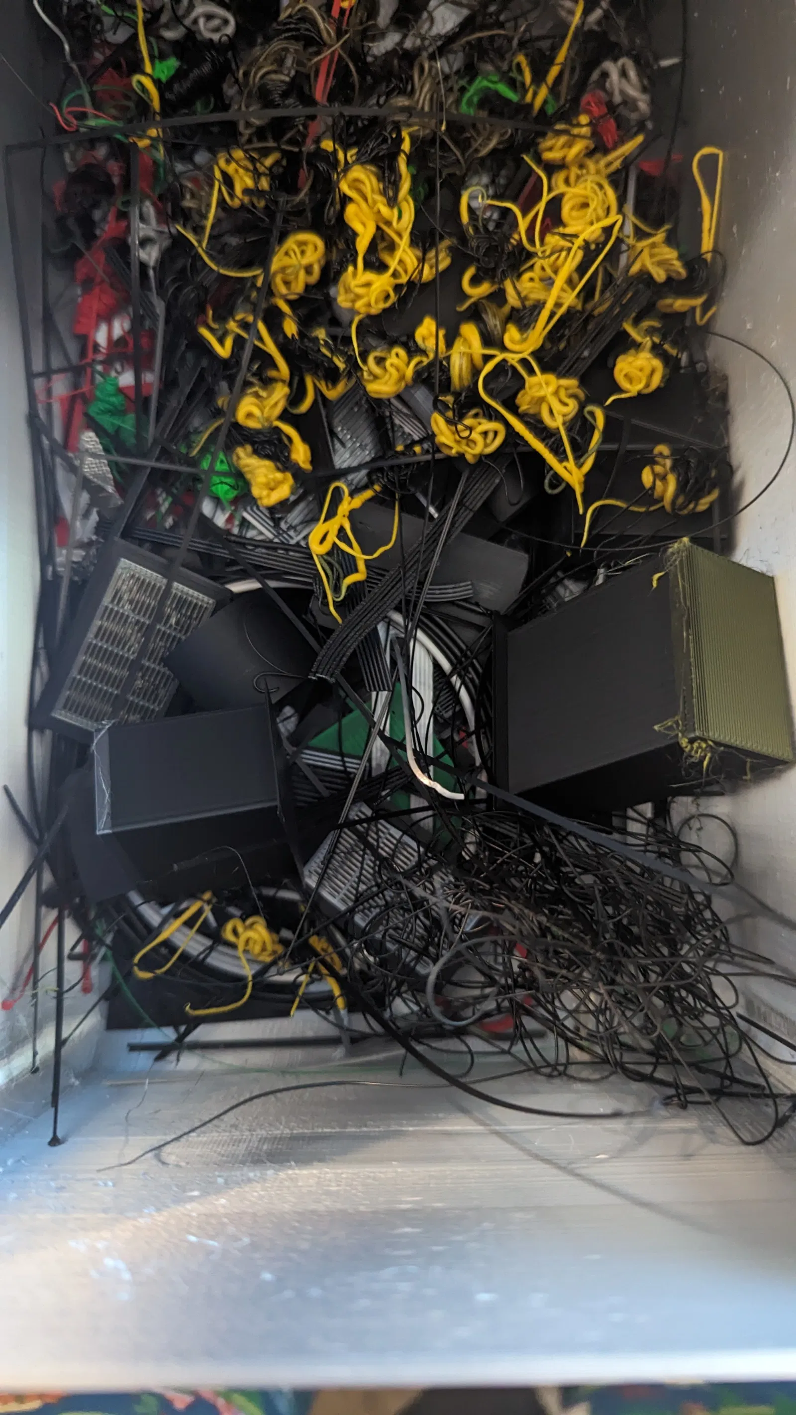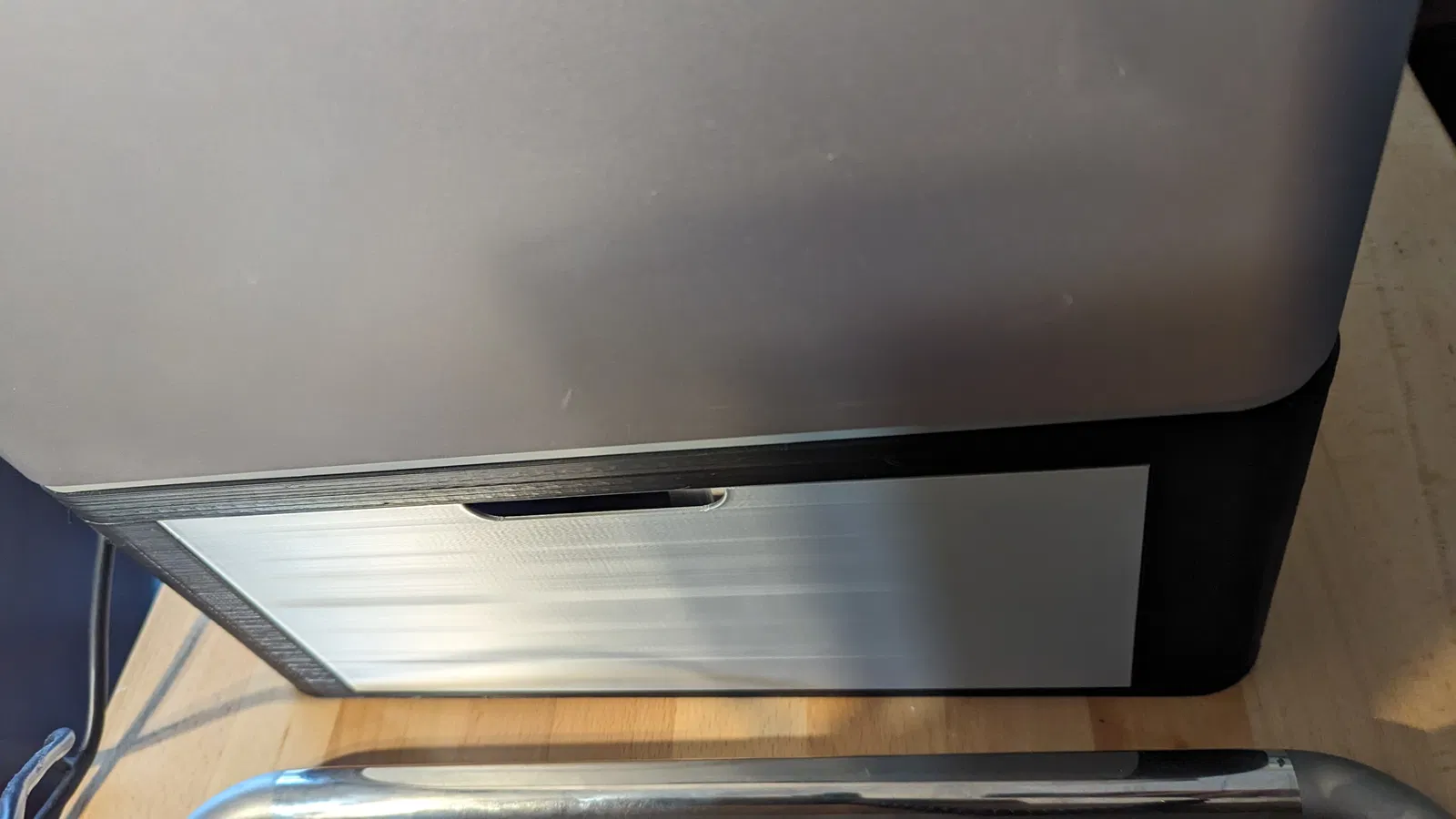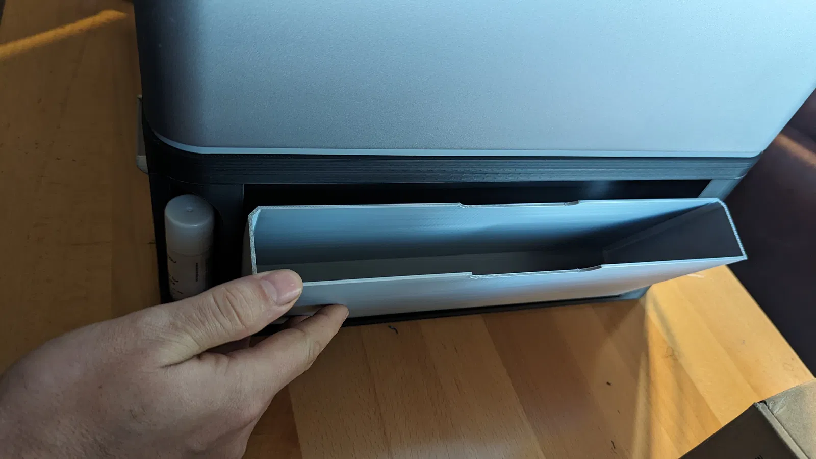 Tôi đã in với 3 lớp tường và 50% độ đặc lưới tổ ong (gyroid), có thể hơi thừa nhưng thiết kế khá tối giản. Tôi đã sử dụng đầu phun 0.6mm. Các ngăn bên hông có thể vừa với bàn in Bambu X/P. Ống dẫn "phân" được in tốt khi úp ngược, chậm hơn phần còn lại và có viền (tôi lo nó sẽ bị đổ). Không có ốc vít, chỉ cần một ít keo CA để gắn ống dẫn "phân". Phần trên khớp với đế - của tôi cần một chút tác động nhẹ nhàng bằng búa cao su, mặc dù độ thô của cài đặt in có thể đã góp phần vào điều đó. Các ngăn kéo và kho chứa bên hông chỉ cần lắp vào. Tôi cao 1m9, nặng 113kg và tôi đã đứng lên đế rồi lắc lư trước khi đặt máy in lên đó ;)