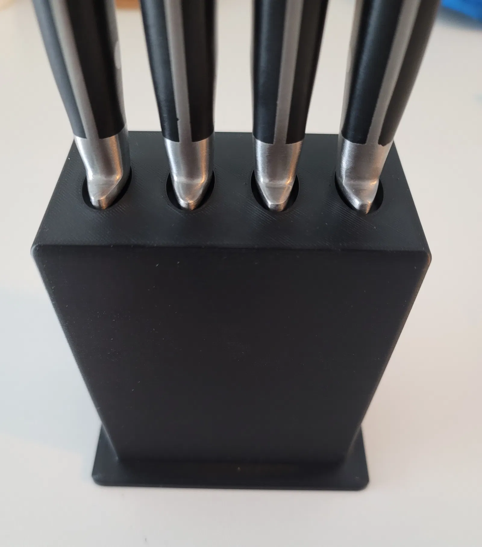 Khay đựng dao bít tết, thiết kế mặt phẳng có lõm, được in trên máy MK4 bằng PLA thông thường. Không cần hỗ trợ, độ lấp đầy 15%. Có nhiều biến thể khác đã có sẵn.