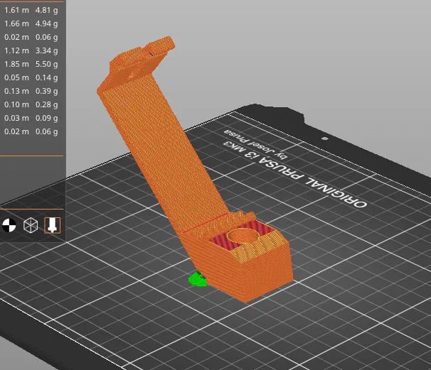 In trên máy Prusa i3 MK3S+ mặc định, cài đặt chất lượng 0.20, 15% độ dày ruột. Không cần hỗ trợ ngoại trừ phần phía sau như được chỉ định trong hình. (Tôi gặp một chút sợi nhựa ở phía trên của kẹp vì nó là phần nhô ra trực tiếp nhưng có thể cắt bỏ dễ dàng và không ảnh hưởng đến hiệu suất. Bạn có thể sử dụng hỗ trợ nếu cần.)