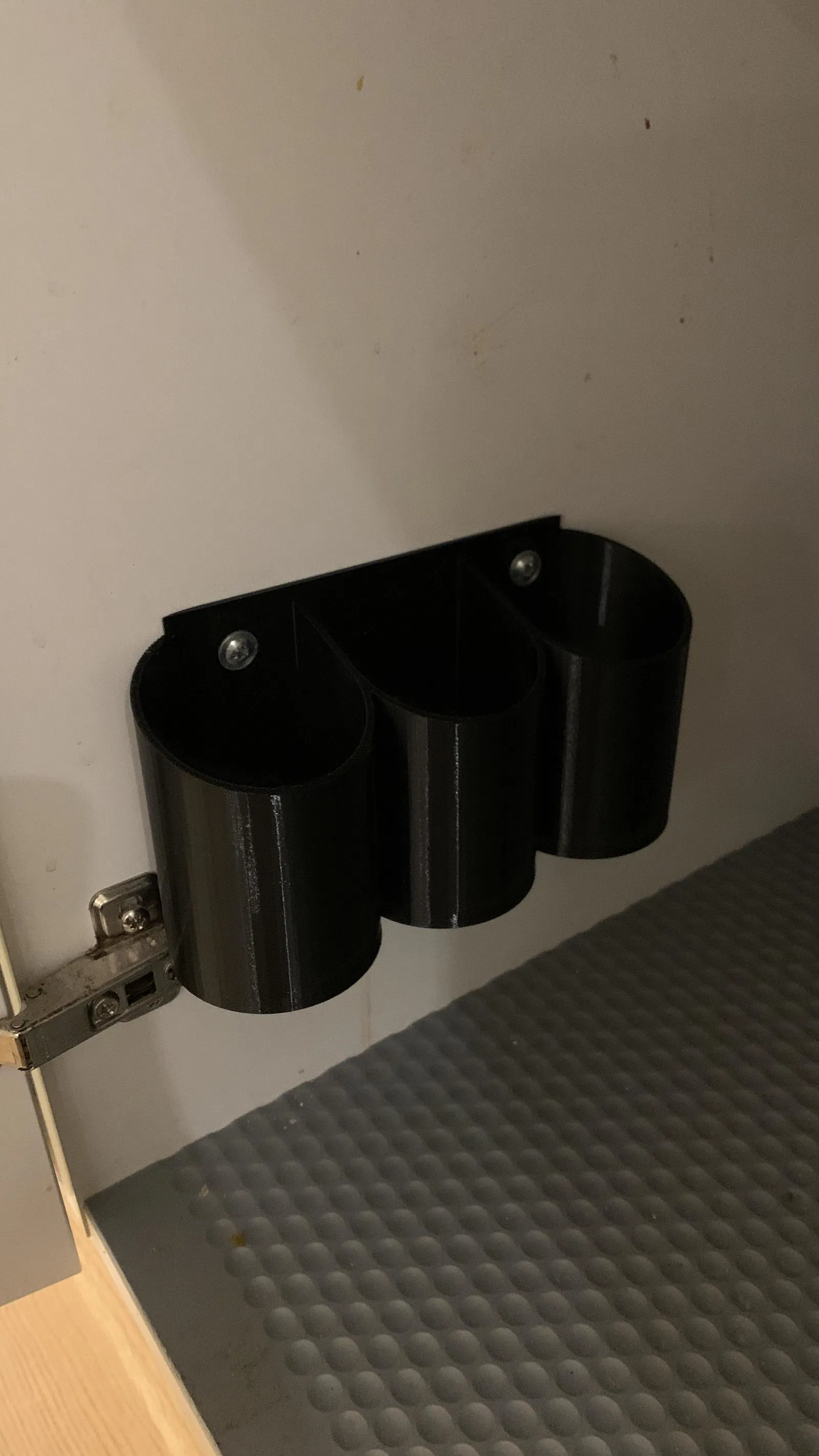 Chỗ đựng túi rác này tôi làm để đựng các loại túi rác khác nhau trong bếp. Phần đáy dạng lưới lục giác giúp tránh việc đồ vật bị đọng lại bên dưới.