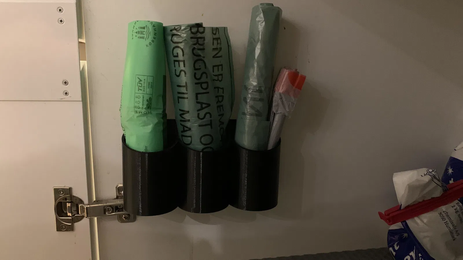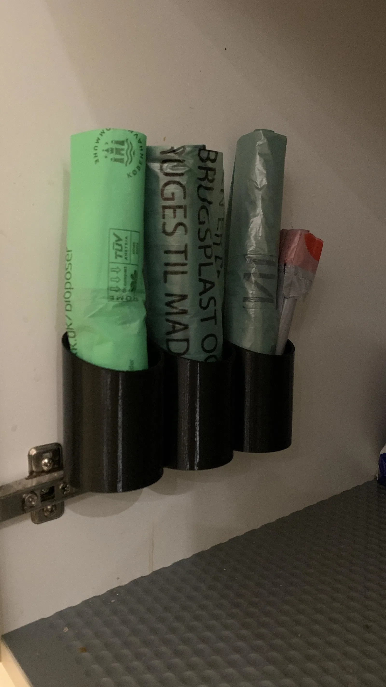 Tôi làm cái này để đựng mấy loại túi rác khác nhau trong bếp nè.