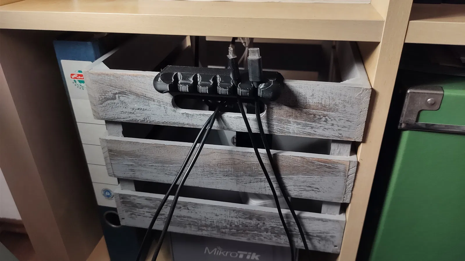 Chỉnh sửa giá đỡ cáp để bạn có thể kẹp nó vào các hộp lưu trữ khác nhau. Rất tiện lợi cho việc quản lý dây cáp gọn gàng.