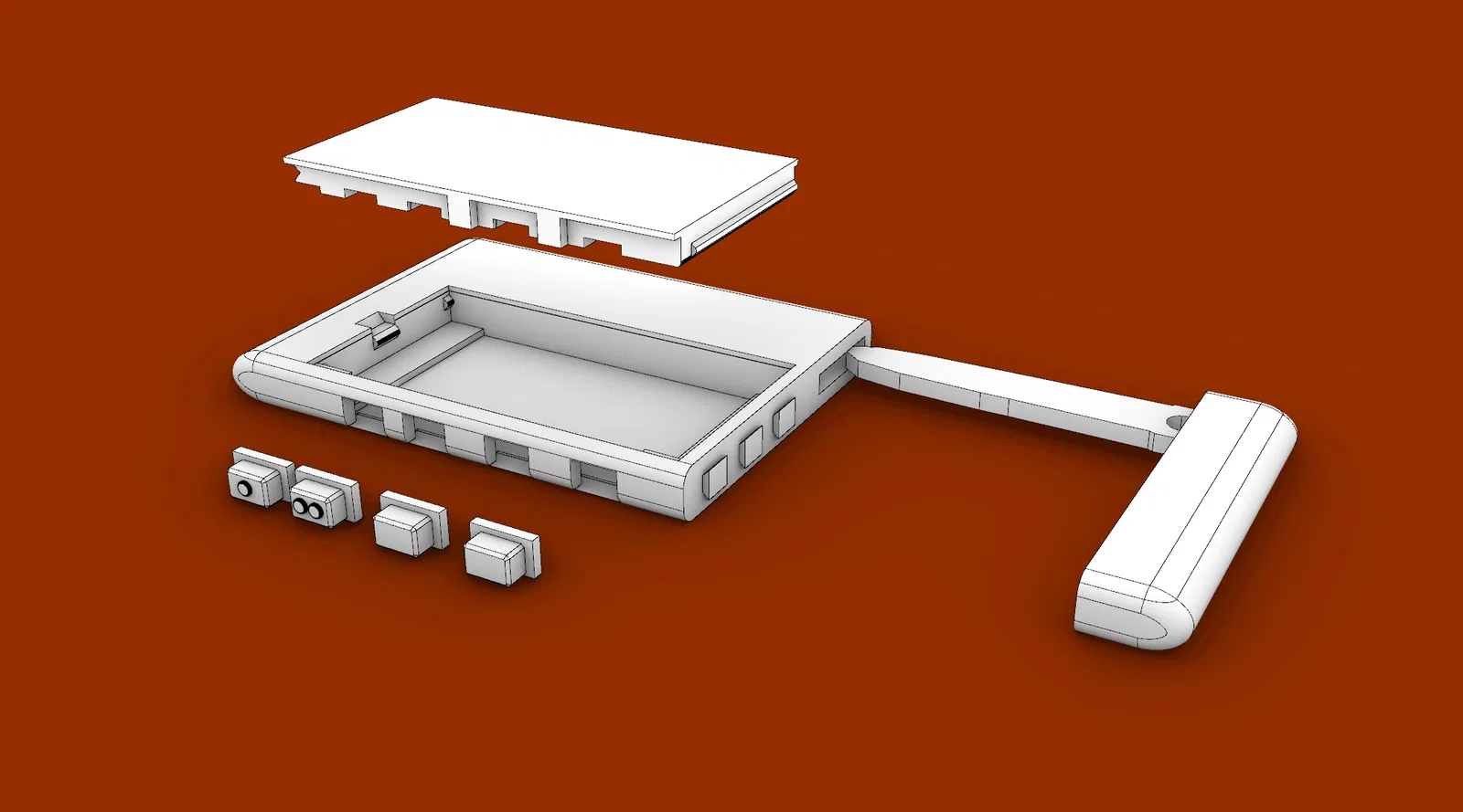 Móc khóa Mazda 2020, kích thước thẻ ATM, dày 7.8mm, có chỗ giấu chìa khóa dự phòng. Mấy cái rãnh ghép bán phần cho phép trượt nắp sau ra khỏi mấy cái nút một nửa, rồi rút chìa ra bằng cách kéo nắp sau ra. Sẽ cần vật liệu hỗ trợ (support material).
