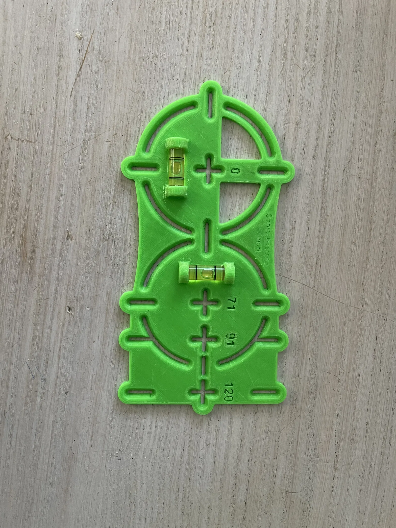 Để công việc dễ dàng hơn, tôi đã tạo một khuôn khoan cho hộp công tắc. Để không cần dùng thêm thước thủy nữa, tôi đã tích hợp hai bọt thủy vào đây.