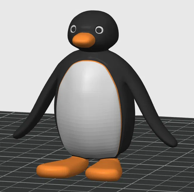 Mô hình Pingu được tô màu cho Bambu AMS và Prusa MMU, với hai phiên bản: một bản chi tiết và một bản "Low Rez" tiết kiệm thời gian và nhựa in. Phiên bản PrusaSlicer cũng được tạo để đảm bảo tương thích MMU.