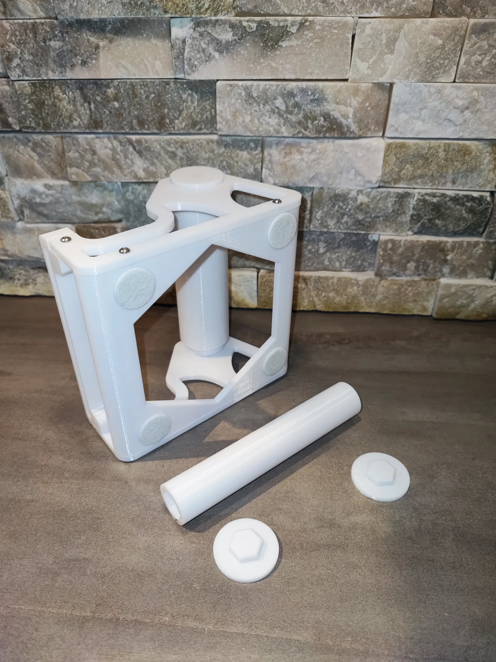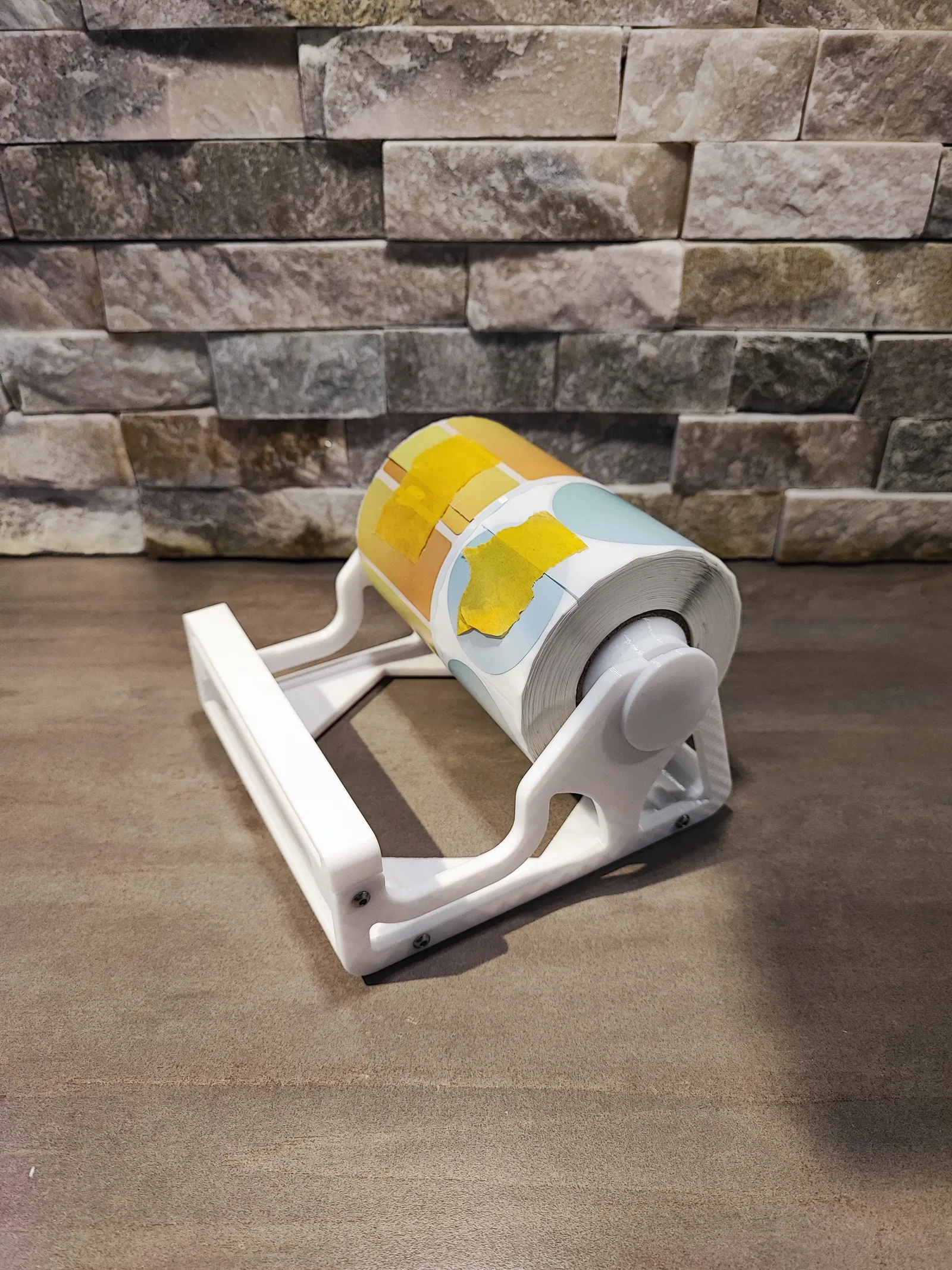 Tui có làm một cái đế giữ nhãn đơn giản. Cái này có thể để được 1 cuộn lớn (rộng 105 mm và đường kính trong 20.5 mm) hoặc 2 cuộn nhỏ (rộng 52 mm và đường kính trong 40mm). Phiên bản V1 và V2 có hướng dẫn vặn ốc chi tiết.