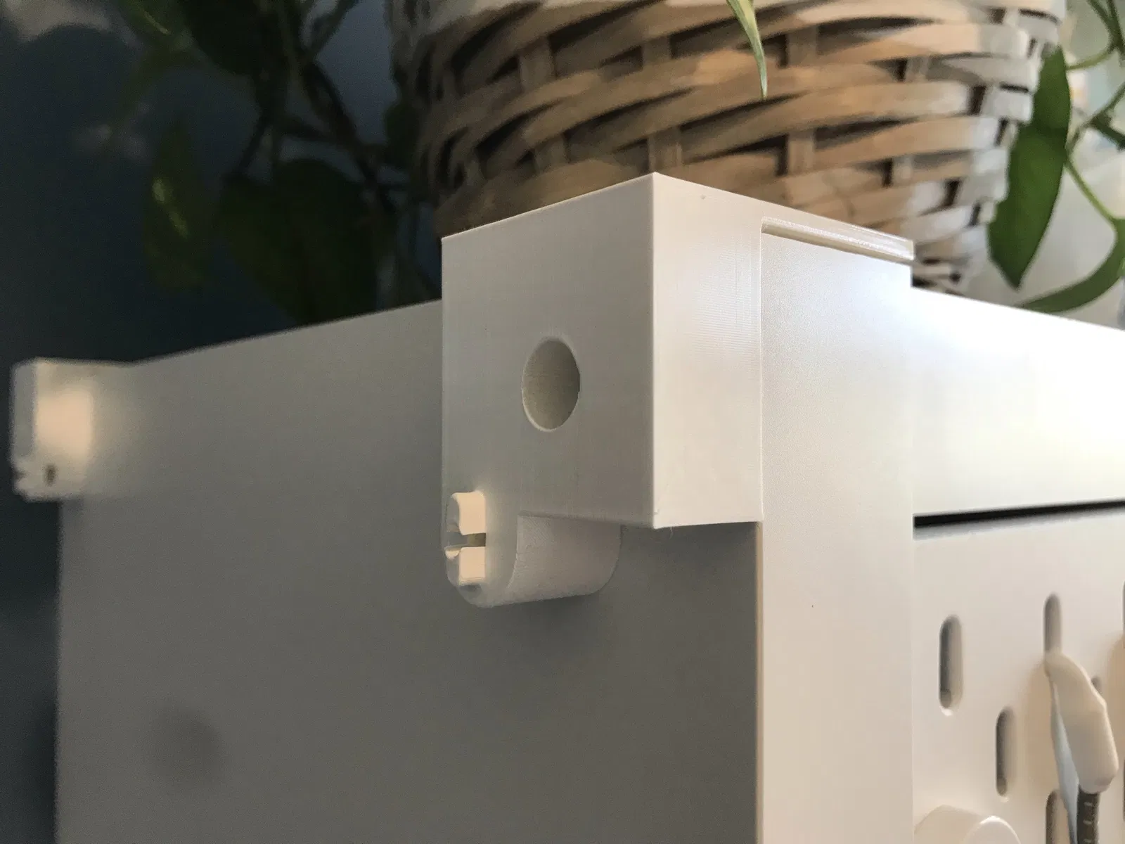 Việt: Miếng đệm để treo bảng SKÅDIS (36x56 cm) lên cạnh của kệ KALLAX. Không cần phải thay đổi gì trên kệ đâu, vì mình sẽ tận dụng hai con vít cạnh của kệ để gắn miếng đệm này vào.