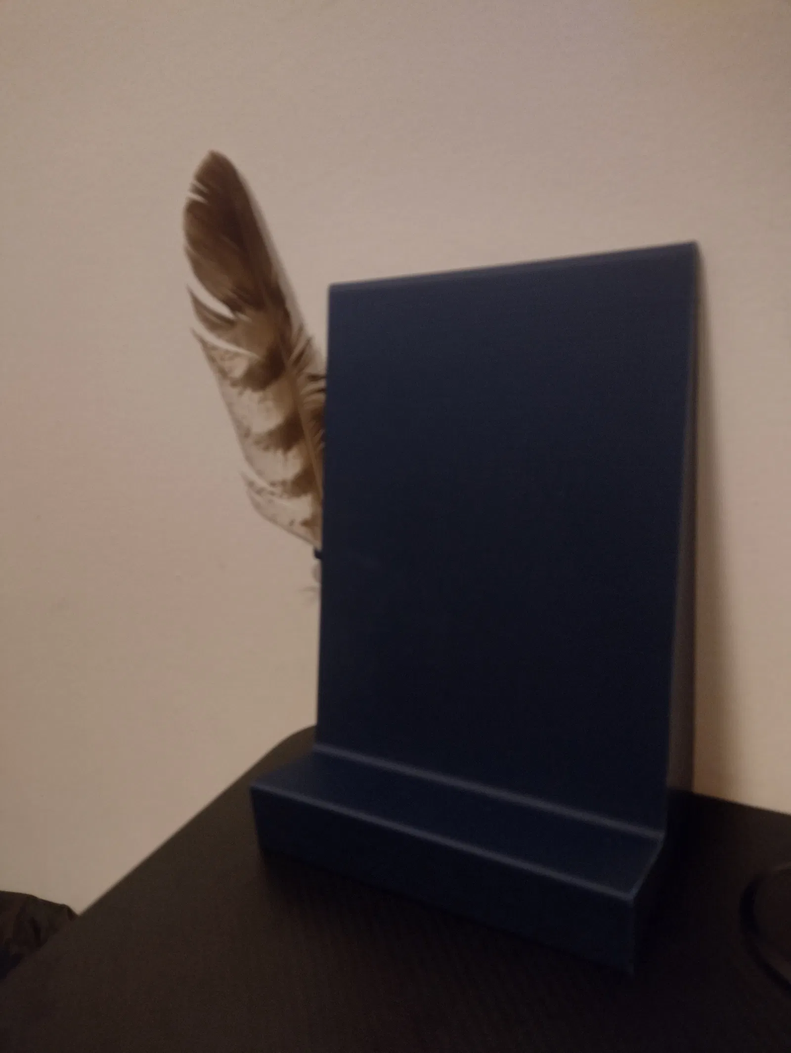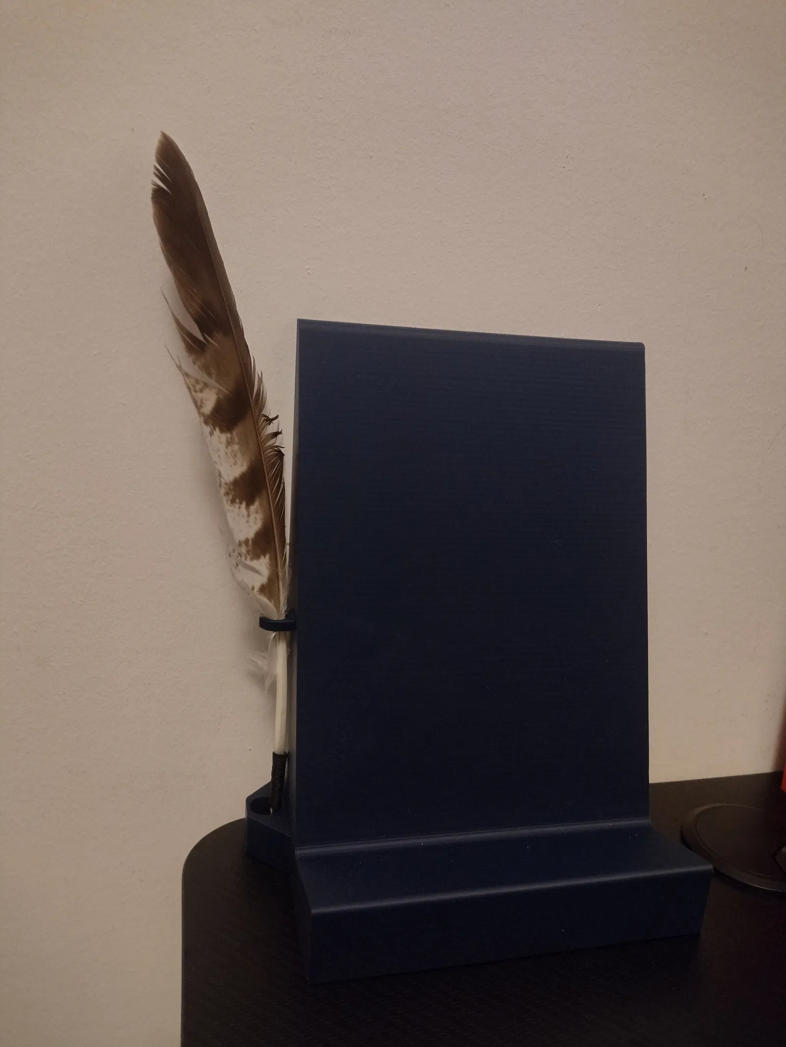 Giá đỡ này dùng để trưng bày sổ nhật ký hoặc sách cỡ lớn, có thêm chỗ để bút giữ mọi thứ gọn gàng. In bằng PLA, không cần hỗ trợ, đặt trên mặt phẳng. Bạn có thể để lại bình luận để góp ý nâng cấp.
