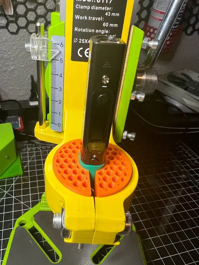 Adapter chèn cho giá đỡ khoan HFS (hoặc bất kỳ giá đỡ nào sử dụng vòng chuyển đổi 44mm) để gắn một mỏ hàn Pinecil. Giá đỡ khoan có thể tìm thấy trên Amazon tại đây - (Không phải liên kết liên kết, giá là 27 USD vào thời điểm đăng) https://www.amazon.com/dp/B08MTK8S7C?ref=ppx_yo2ov_dt_b_product_details&th=1