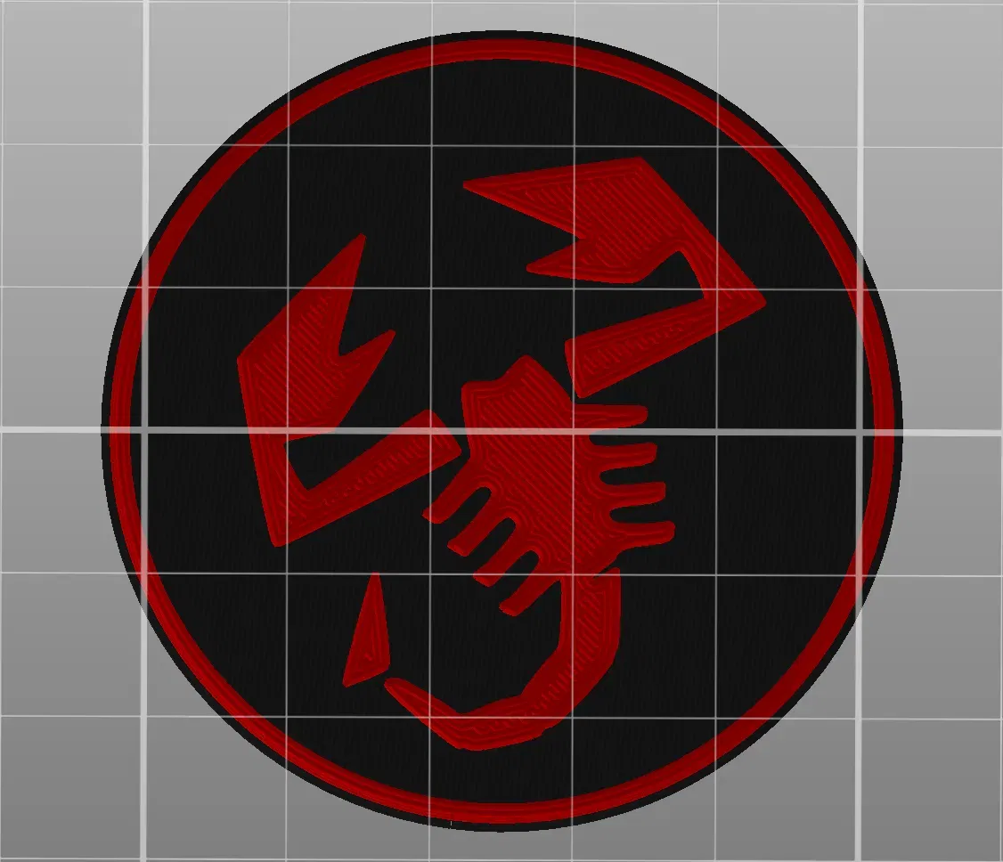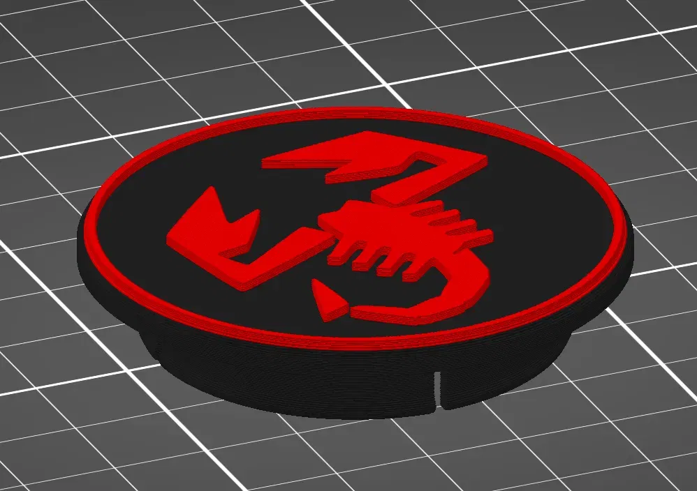 Nếu bạn mở 'abarth_cover.3mf' như một dự án, nó được thiết lập với việc thay đổi màu sắc và làn đầu tiên và toàn bộ biểu tượng với một vòng tròn.